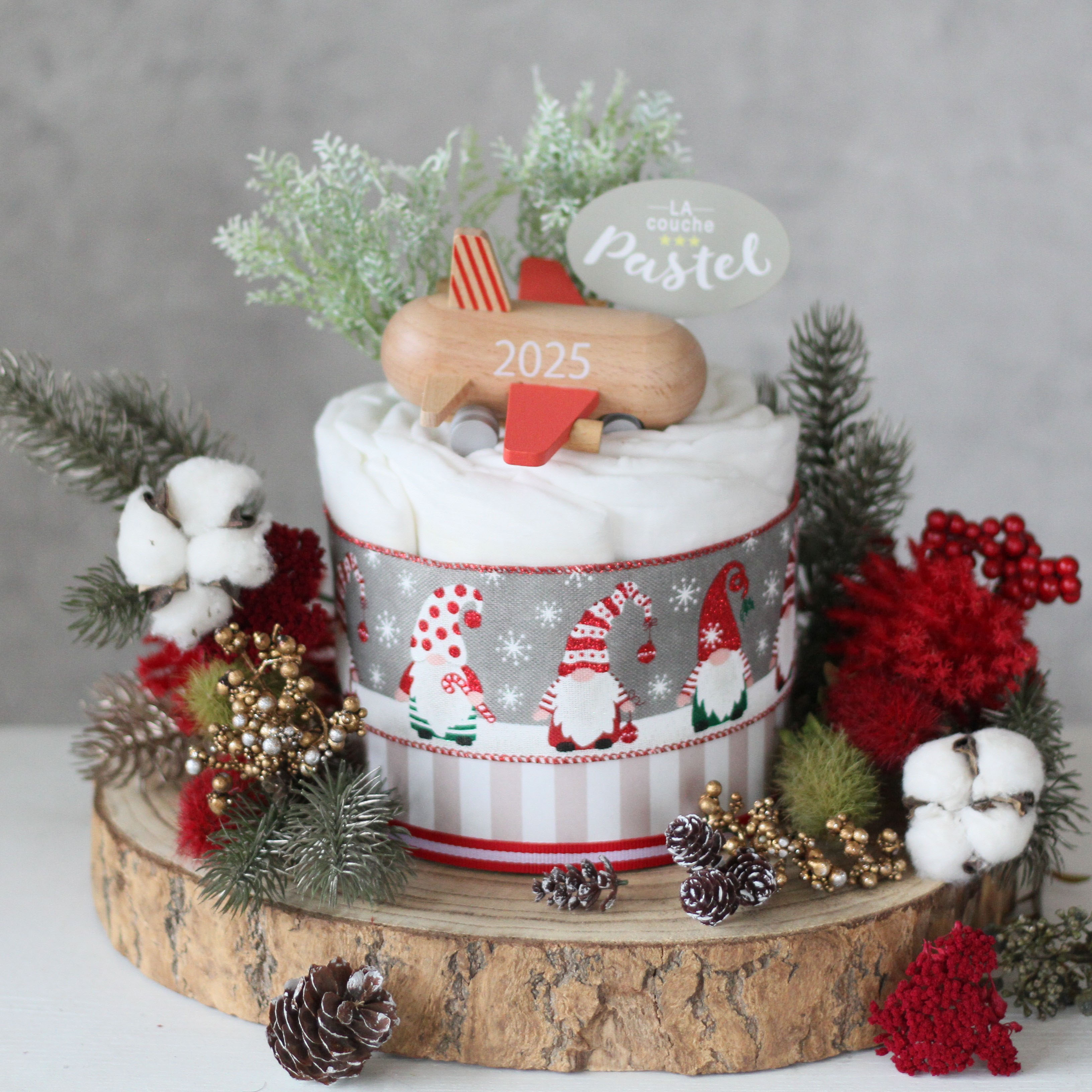 2025年ロゴ入りのプレミアムなmini jet(飛行機)付きおむつケーキです。