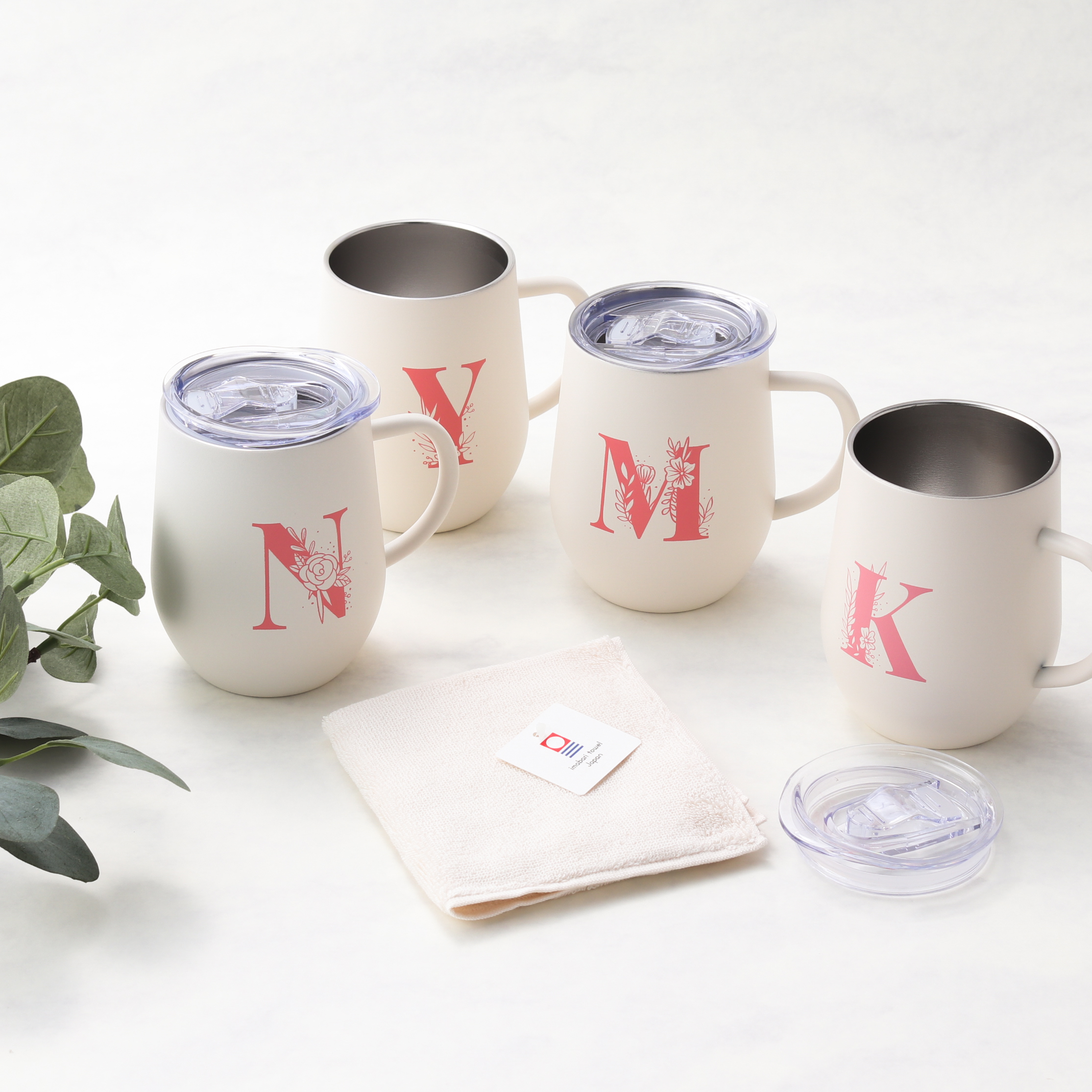 大口注文・法人のお問い合わせはこちら「ありがとう」や「おめでとう」の気持ちは伝えたいけれど、相手に気を使わせてしまうかも…。そんな優しい悩みに応えるのが、この特別なギフトセットです。落ち着いたアイボリーに、やさしい桜ピンクのイニシャルを添えて。名入れほど重すぎず、でもパーソナルな温かみが伝わる"ちょうどよさ"が、大切な人への想いをそっと届けます。