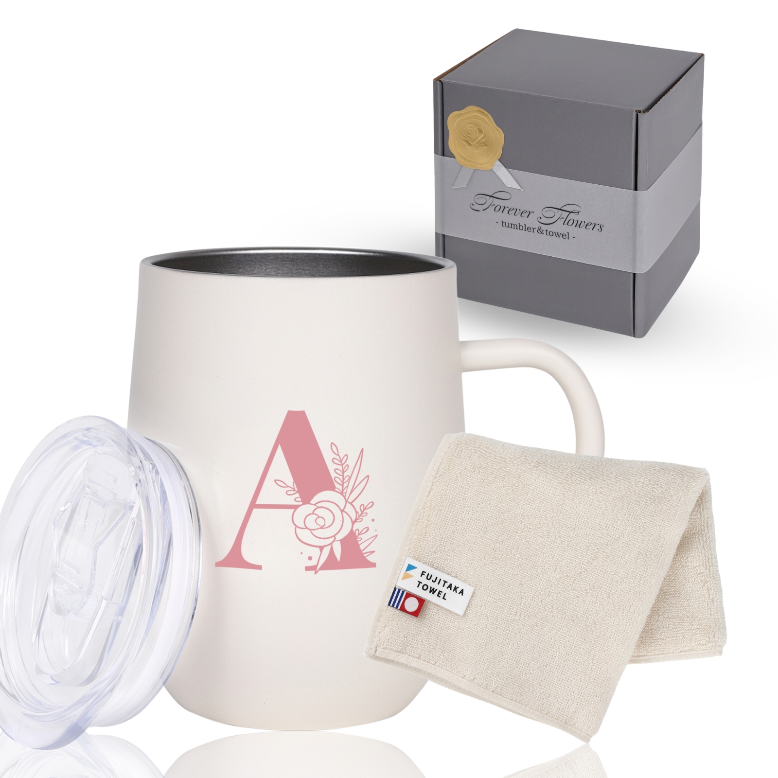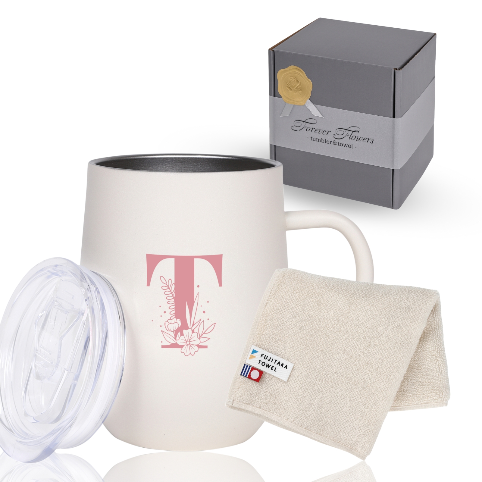 気を使わせない“ちょうどいい特別感”を贈るギフト。上品なイニシャルを添えたタンブラーは、真空断熱構造でいつでも飲みごろ。フタ付きでデスクでも安心です。セットのハンカチは創業100年の今治タオル製で、思わず触れたくなる柔らかさ。日常にぬくもりを添え、大切な人との心をつなぐ贈り物です。