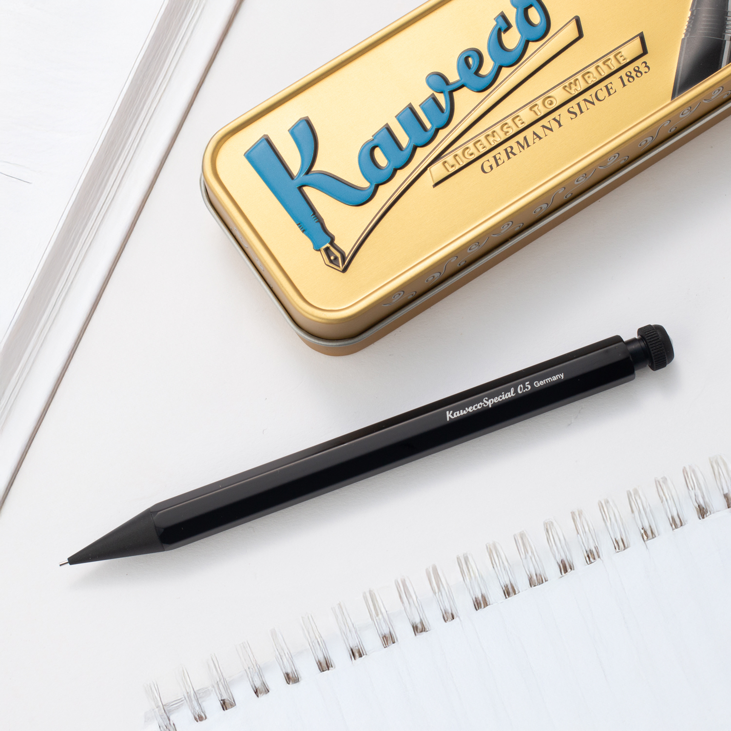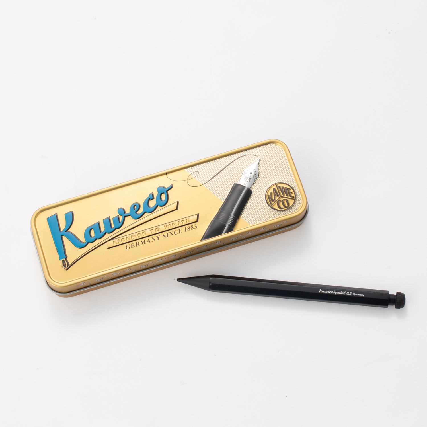 大口注文・法人のお問い合わせはこちら1883年、ドイツ・ハイデルベルグで生まれたKaweco(カヴェコ)。その豊かな歴史の中で数々の名作を生み出し、世界中の筆記具ファンを魅了し続けてきました。ご紹介する「スペシャル」は、海外製シャープペンシルの中で最も支持され、特に未来を描く学生たちに圧倒的な人気を誇るモデル。長く愛用できる確かな品質が、大切な人への贈りものに最適です。