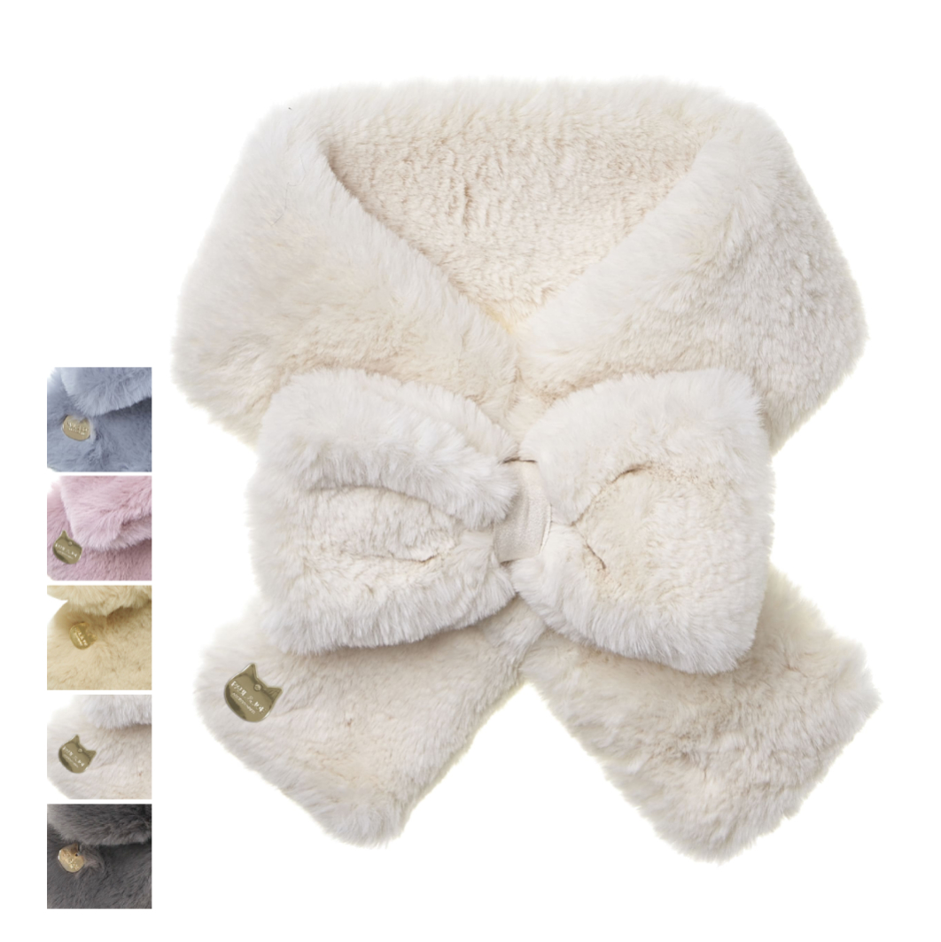 大口注文・法人のお問い合わせはこちら首元を飾るのは、ふんわりと毛足の長い、大きなリボン。思わず触れたくなるような柔らかなフェイクファーが、顔周りをぱっと華やかに彩ります。いつものコーディネートにプラスするだけで、心ときめく特別な一日が始まりそうな、愛らしいアクセントです。