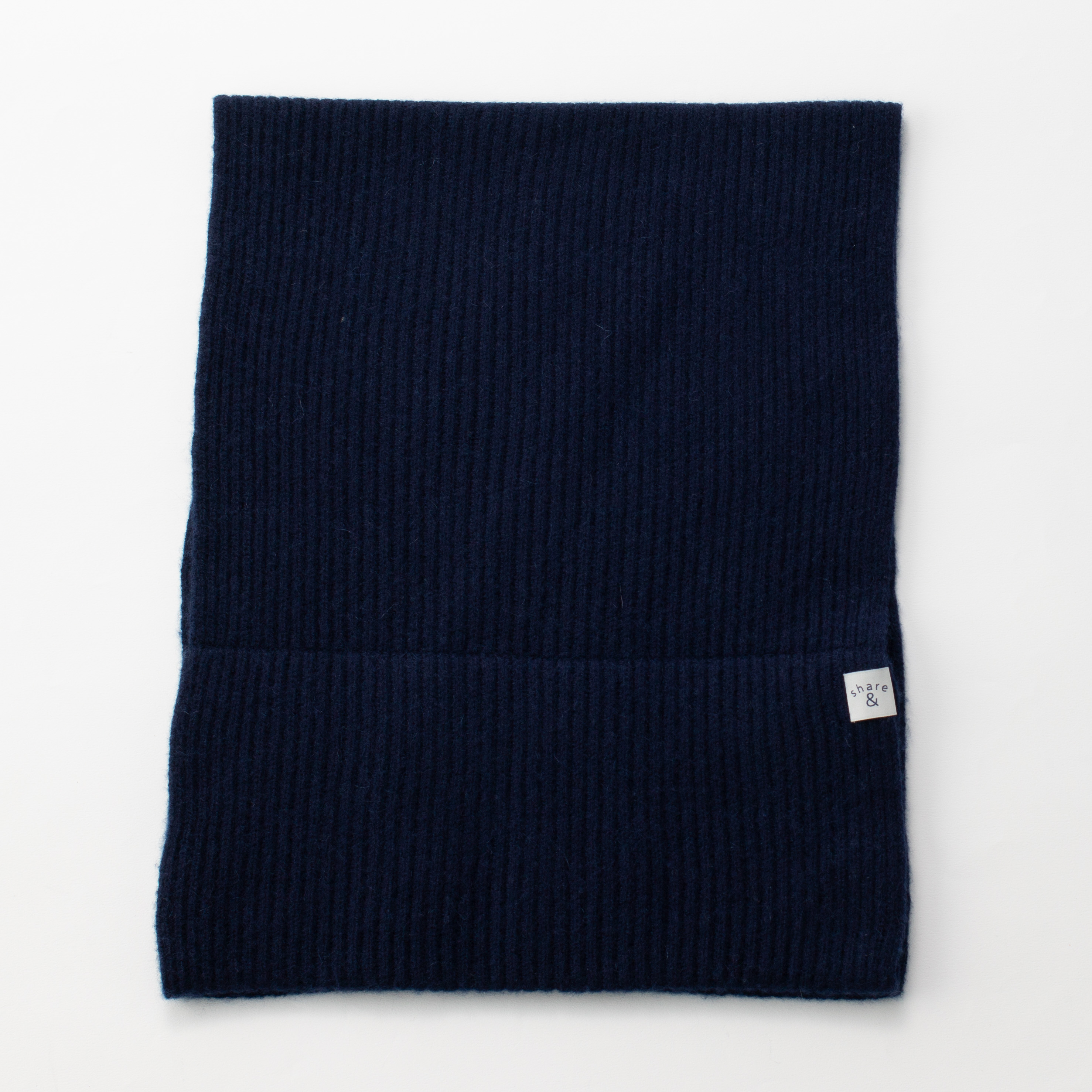 伸縮性のあるニットを使用したユニセックス対応のマフラー。