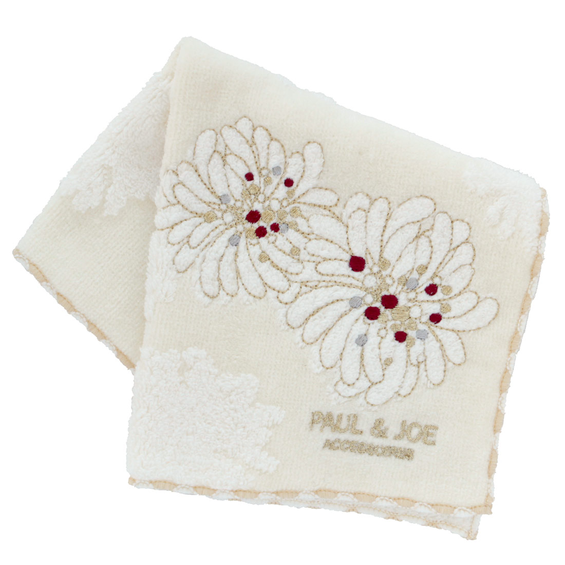 大口注文・法人のお問い合わせはこちら定番のクリザンテームのタオルハンカチがリニューアルしました。 大胆にあしらった刺繍がとても華やかな一枚です。ギフトにもぴったりの一枚です。