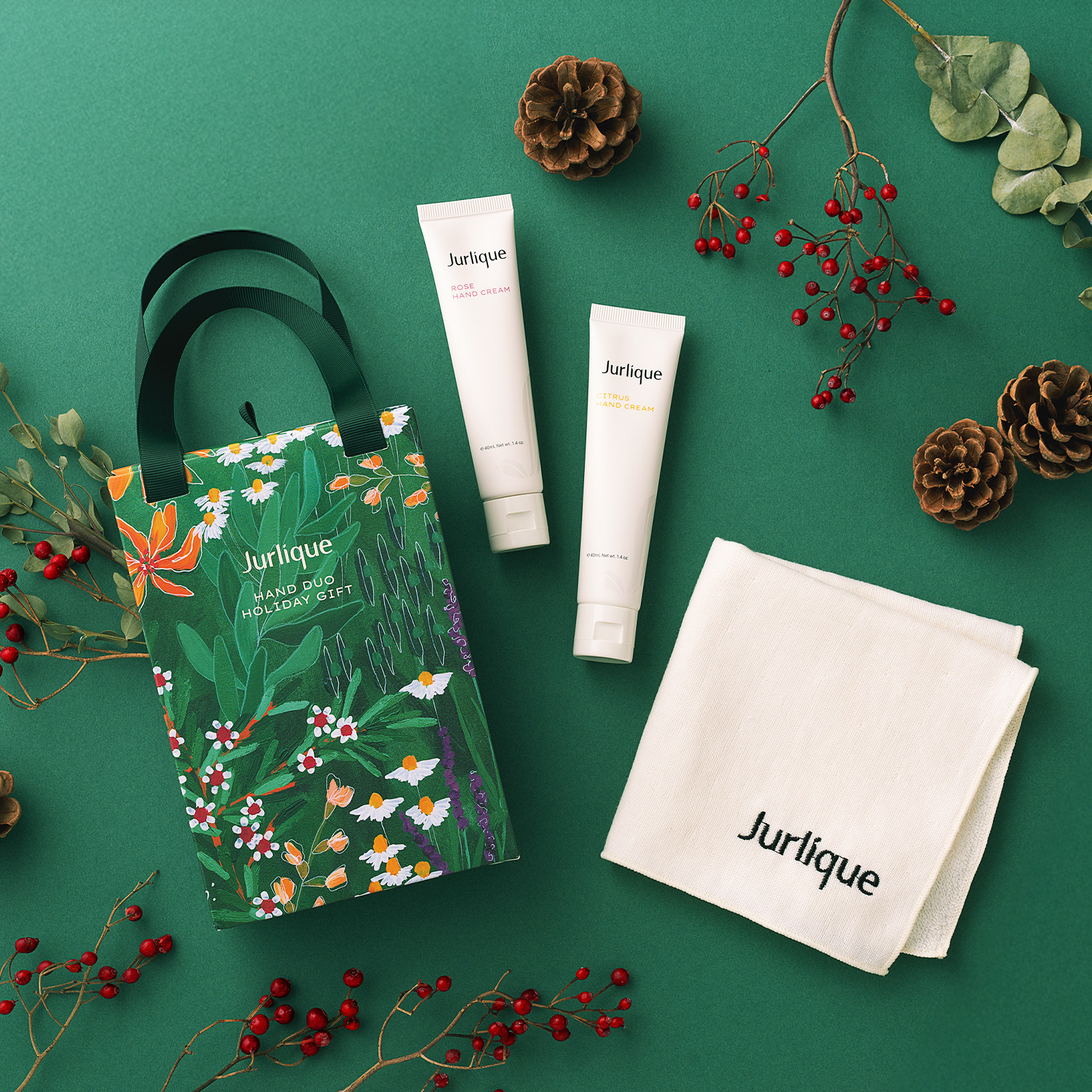 大口注文・法人のお問い合わせはこちら【数量限定】 ジュリーク ロングセラーのハンドクリーム2本(ローズ・シトラス)に、やわらかな使い心地が手肌を包む、オーガニック素材のガーゼハンカチを添えたクリスマス限定ハンドケアキットです。 気分に合わせて使える2種類の香りをセット。 心地よい香りでうっとりするようなハンドケアタイムを、大切なあの人に。