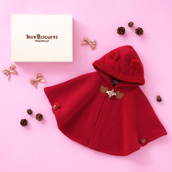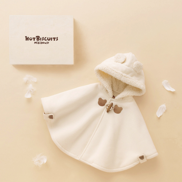 大切な贈り物だから、見た目にもこだわりたい。このマントセットは、ミキハウス ホットビスケッツのロゴが入った上品なギフトボックスでお届けします。箱を開けた瞬間の、喜ぶ顔が目に浮かぶよう。出産祝いはもちろん、お誕生日やクリスマスなど、心からの「おめでとう」を伝えたい特別な日に、最高の笑顔を咲かせるプレゼントを贈りませんか。