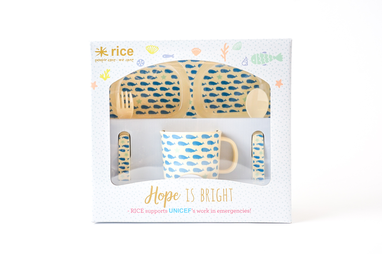 Riceのギフトボックス入りキッズ食器セットです。
