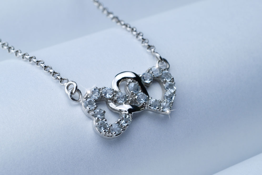 大口注文・法人のお問い合わせはこちら絡み合う3つのハートが愛らしいアクアマリンのネックレス。 「幸せな結婚」「繁栄」をもたらすとされるアクアマリンは良縁を呼び寄せ、長く安定した生活をもたらすと云われています。