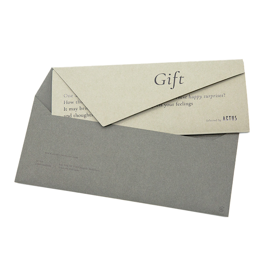 贈る人、贈られる人のライフスタイルやご予算に合わせて、 「おめでとう」や「ありがとう」の気持ちをまっすぐにお届けする。永い時間を共に過ごせる、居心地の良い空間づくりのためのACTUS(アクタス)のギフトカタログ。よりコンパクトにお贈りできるカードタイプをご用意しました。