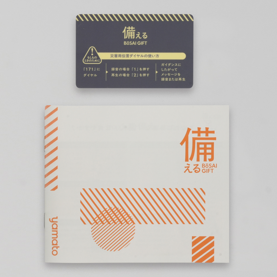 ギフトボックスは、薬などを入れて持ち運べる「備えBOX」として再利用可能。付属のカードには「災害用伝言ダイヤル」の使い方が記載されており、お財布に入れておけば、いざという時の心強い味方になります。贈って終わりではない、長く続く安心をデザインしました。 「暮らしのなかに、お守りのように安心をひとつプレゼントする」大切な方へのそんな気持ちを込めて『備える 防災ギフト』を贈りませんか?