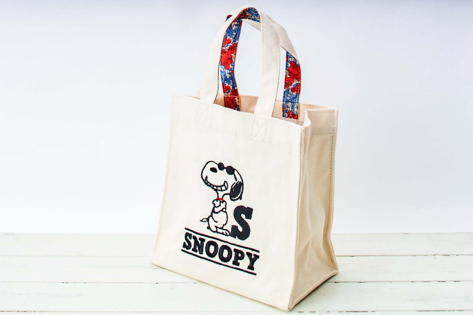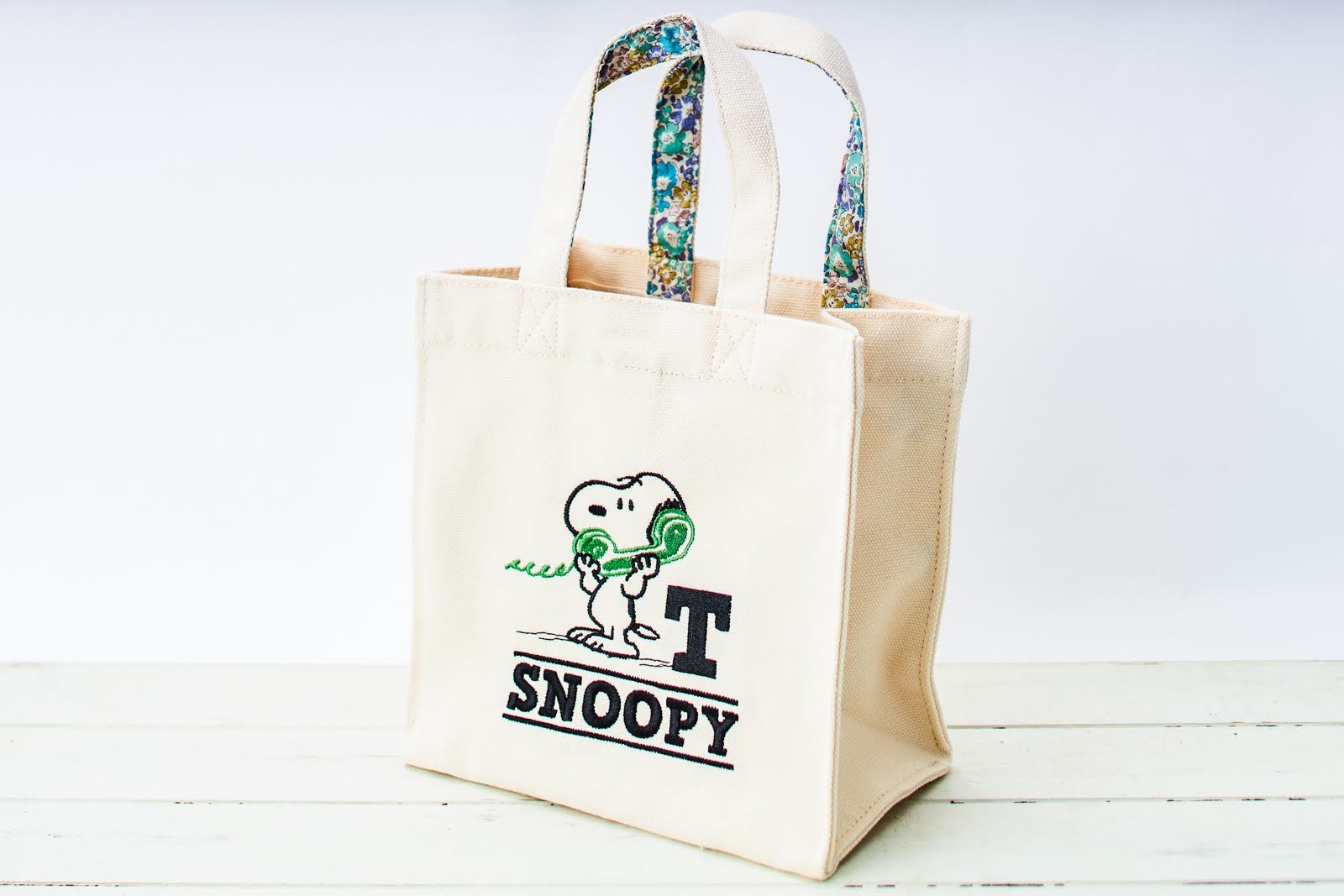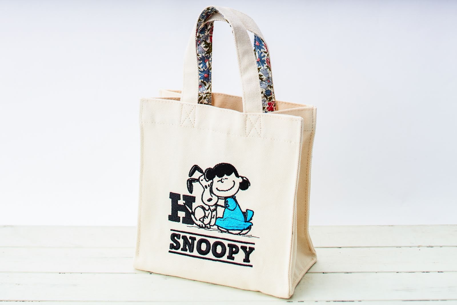 大口注文・法人のお問い合わせはこちらイニシャルに合わせてスヌーピーが刺繍されているかわいらしいデザインです。 長財布・化粧ポーチなどの小物はもちろん、ちょっとしたお出掛けに使えるサイズで便利です。 持ち手に使われているリバティファブリックがおしゃれでアクセントになります。