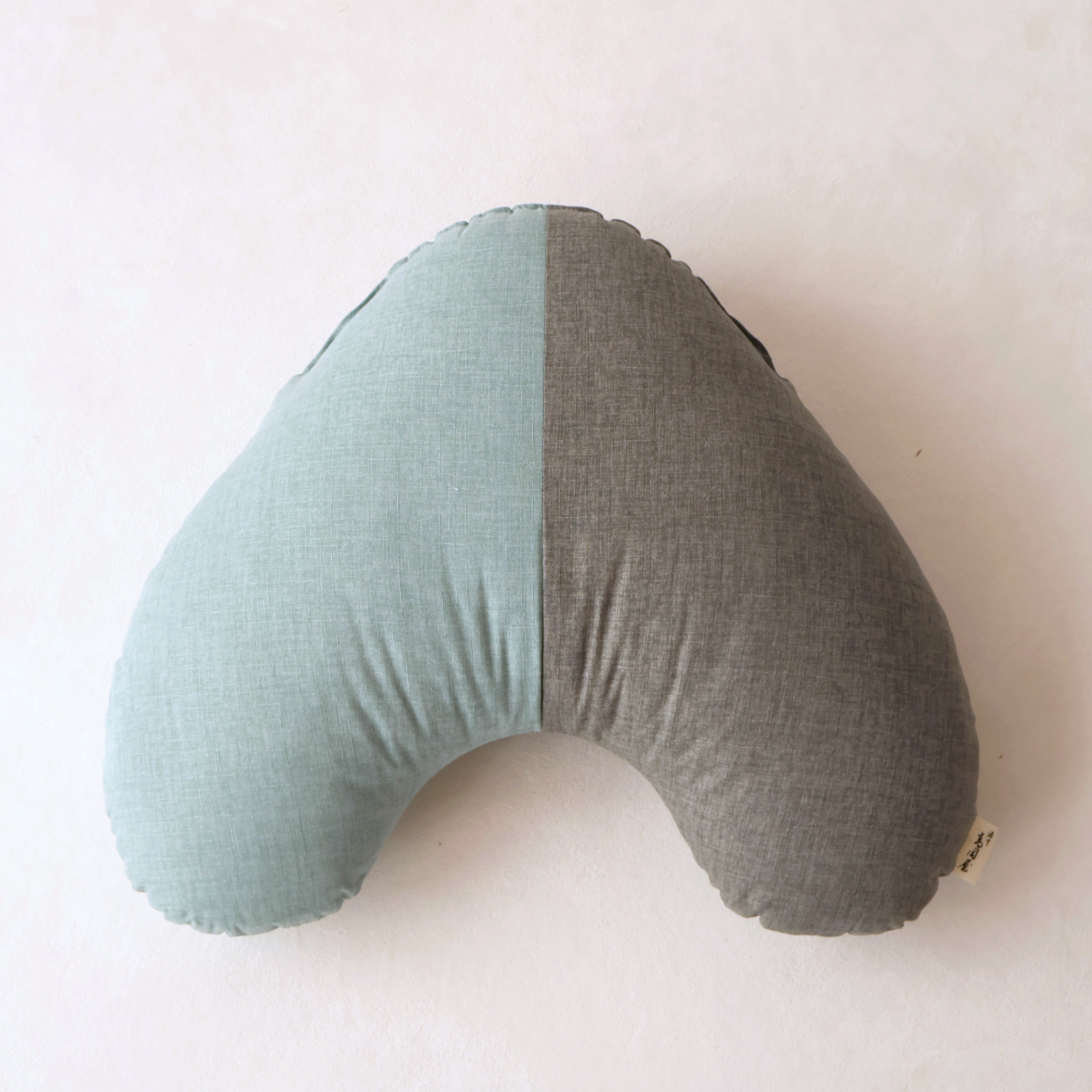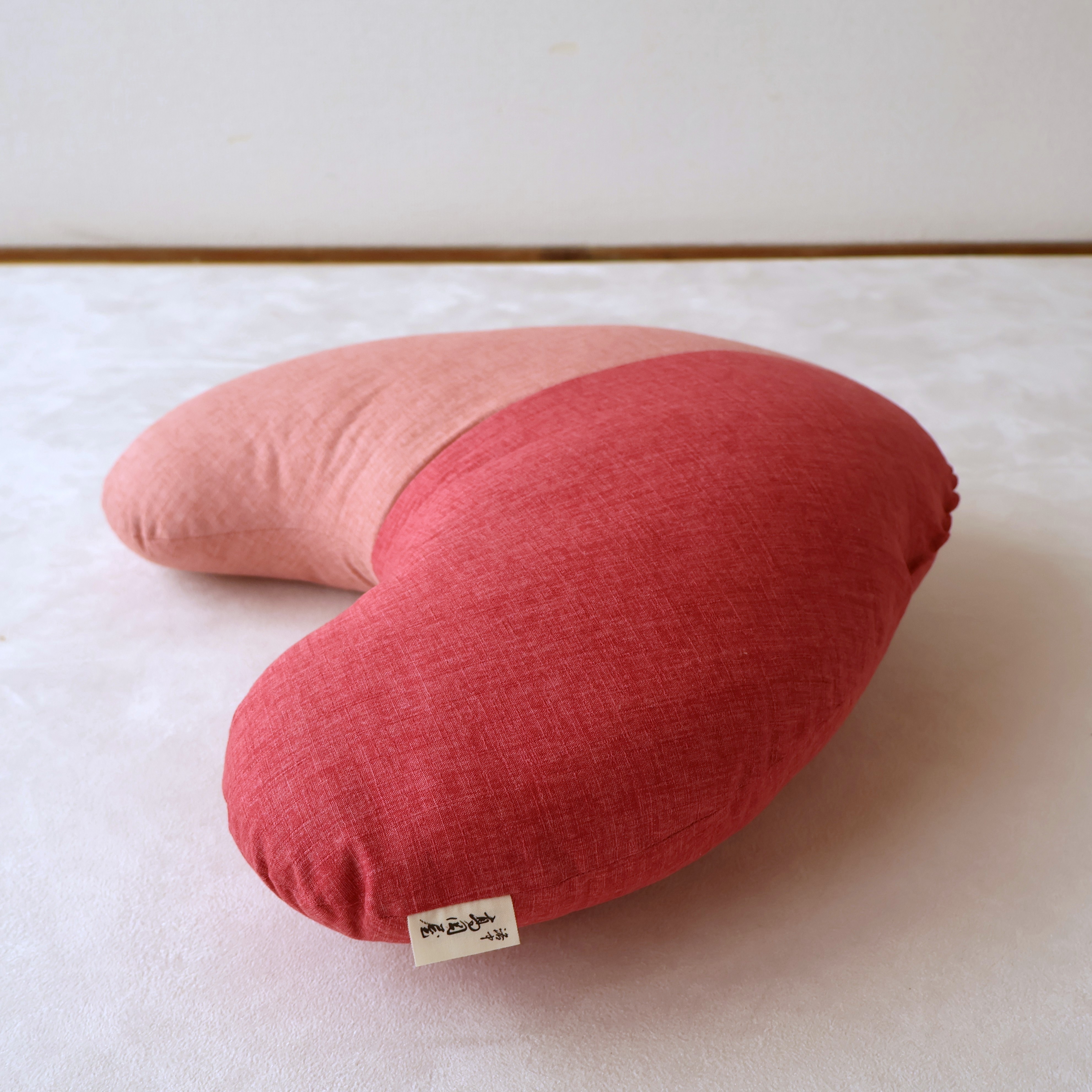 受け継がれた職人の技で手づくりする、うたた寝のためのクッション。こだわり設計のくぼみに体がフィットし、多めに”わた”の入った中央部分が、やさしくしっかりと支えてくれます。コンパクトサイズでどんな使い方にも寄り添う、“くつろぎ上手”なアイテムです。