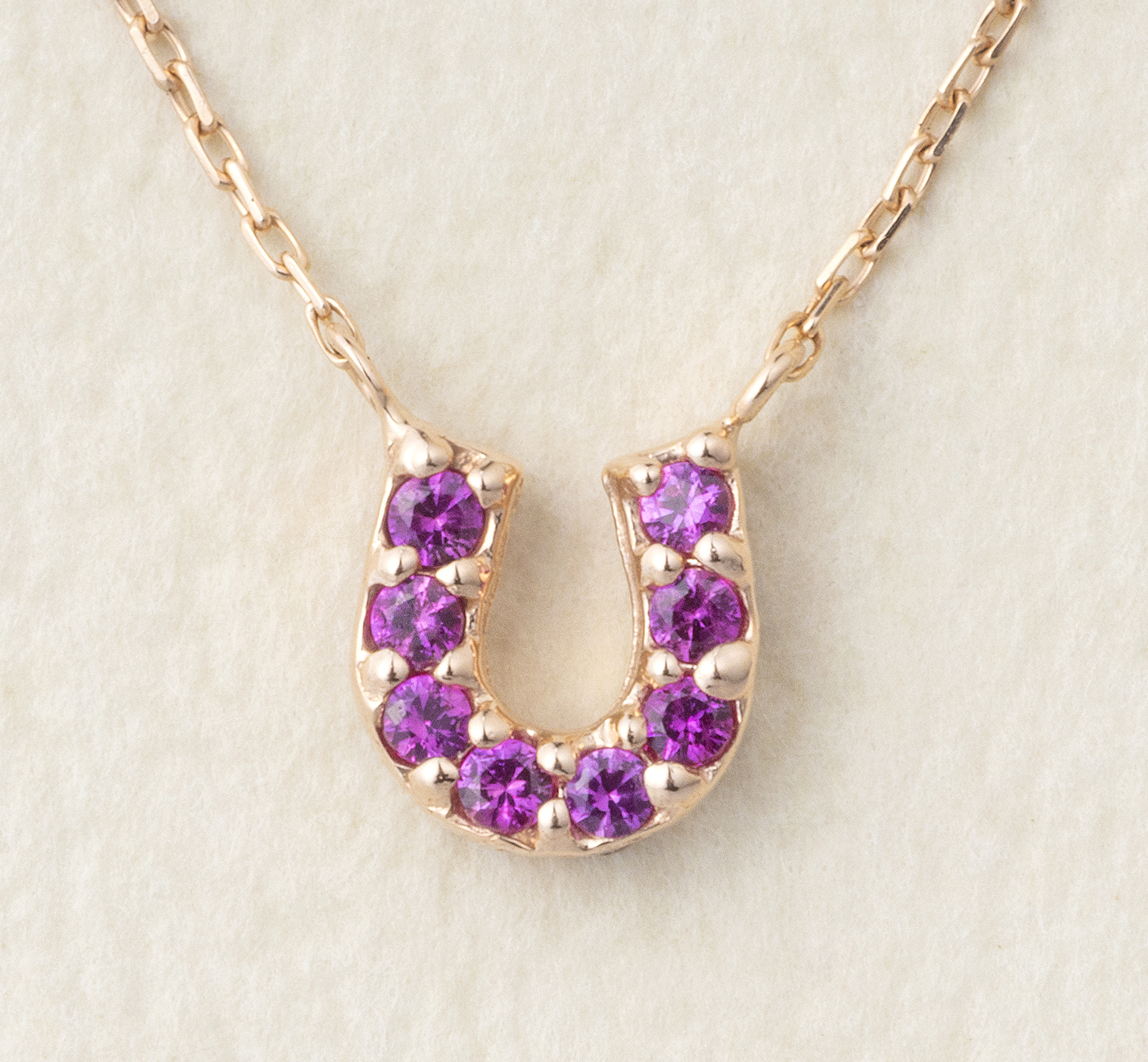 大口注文・法人のお問い合わせはこちらK10PGルビー/ダイヤ ペンダントネックレスは、今人気の馬蹄モチーフのデザインです。 馬蹄はその形から、舞い込んできた幸運を受け止めると言われています。 くぼみに幸せを包み込み逃がさず、持っている人に幸運をもたらしてくれる馬蹄は、古来より西洋では、魔除け・厄除けのお守りとされています。
