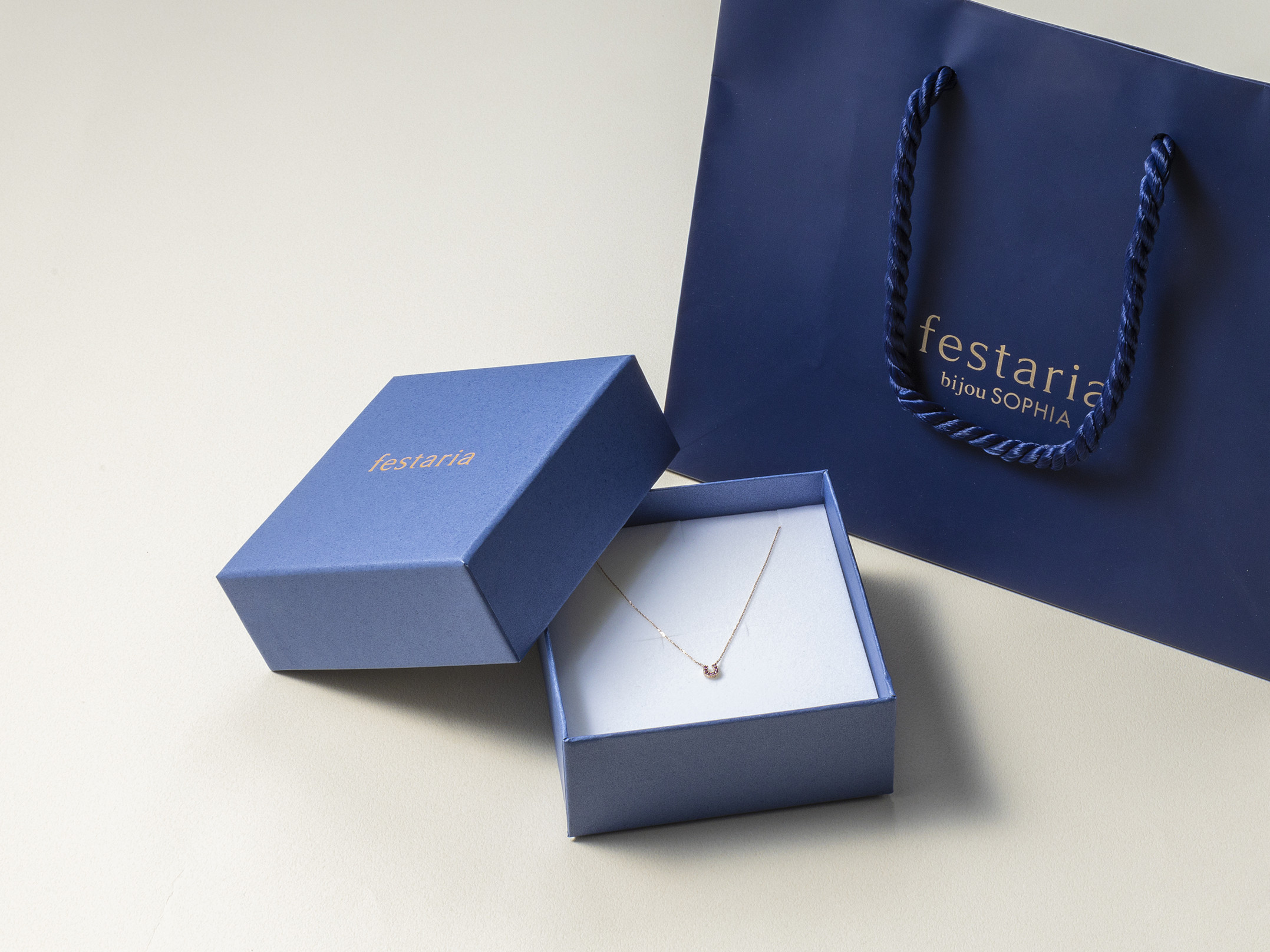 "人とジュエリーが出会うところ そして、新しい物語が紡がれはじめるところ" 「フェスタリア」は“特別な場所”という意味の言葉です。 あなたと、あなたが愛する人たちの、未来の物語が始まる場所でありたい。 「フェスタリア ビジュソフィア」はそんな想いから生まれました。 ジュエリーのひとつひとつに、輝く未来を込めて。