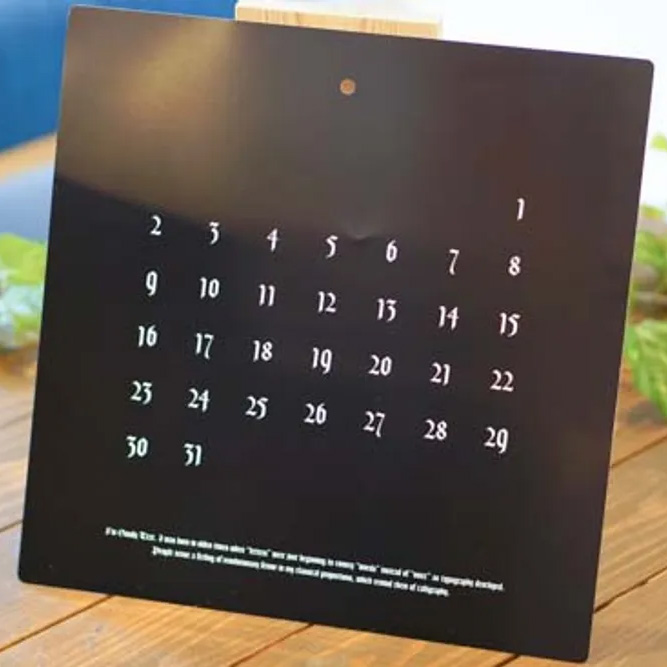 7種類の書体、7種類の月初めによって作られた"万年カレンダー"。書体デザインは時代とともに人々によって支持された「芸術」です。この芸術作品は生活の中に馴染んで上品さを醸し出してくれます。新生活を始めた方、新居に移ったお友達へのプレゼントにいかがでしょうか?