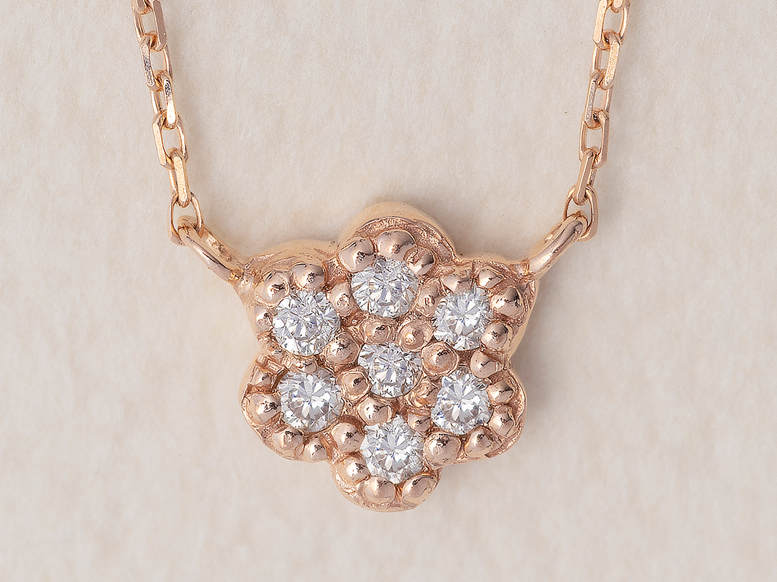 リバーシブルで使える【festaria bijou SOPHIA】K10PGルビー/ダイヤ ペンダントネックレス(花)。 いつもお世話になっている大切な方に日頃の感謝を贈り物として伝えませんか?