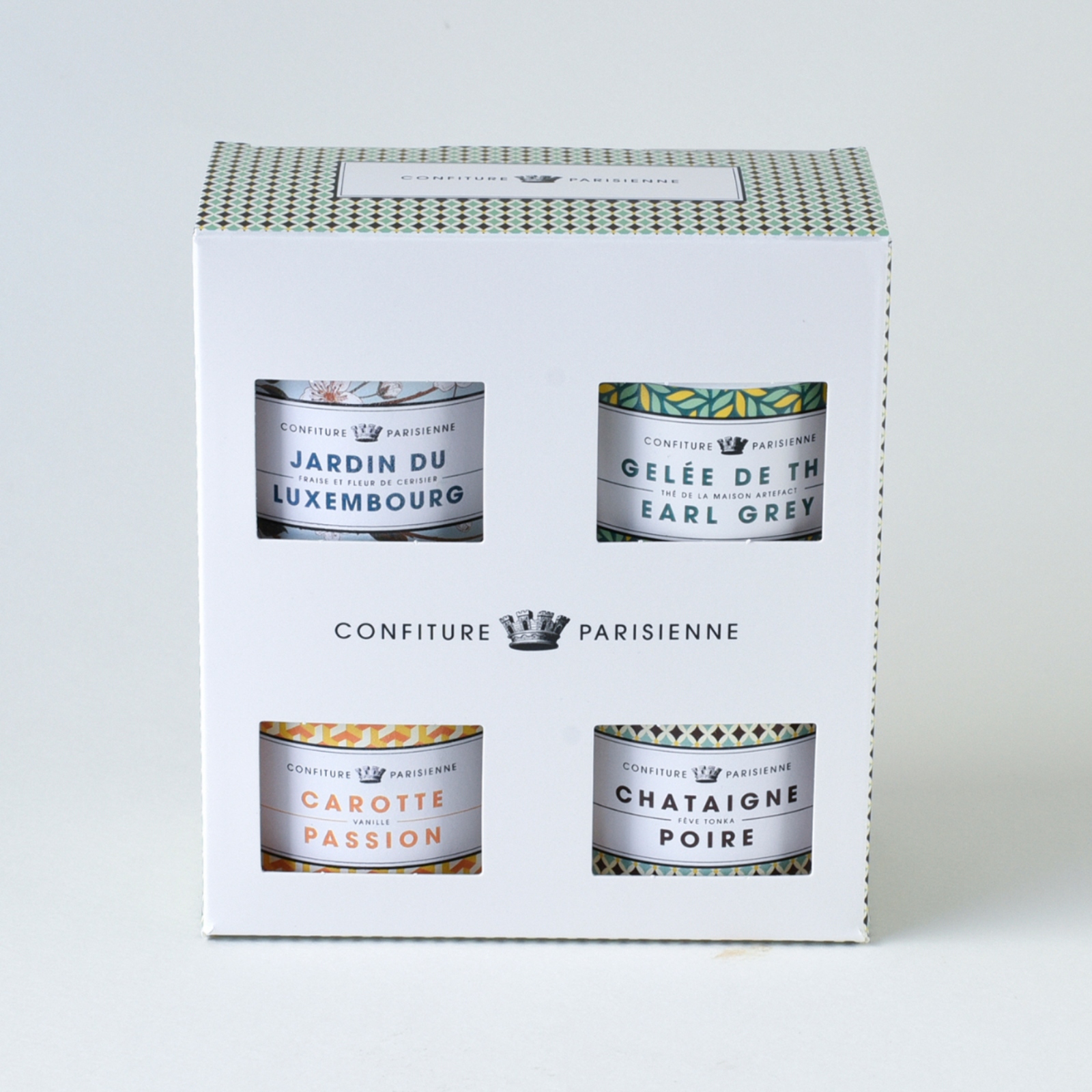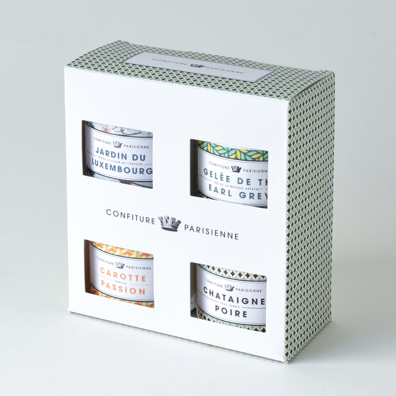 パリ発「コンフィチュール パリジェンヌ」の人気フレーバー4種を可愛いミニサイズでお届け。果実と紅茶、季節の花が織りなす香り豊かな味わいを、パリらしいエスプリとともに贈る贅沢なギフトです。