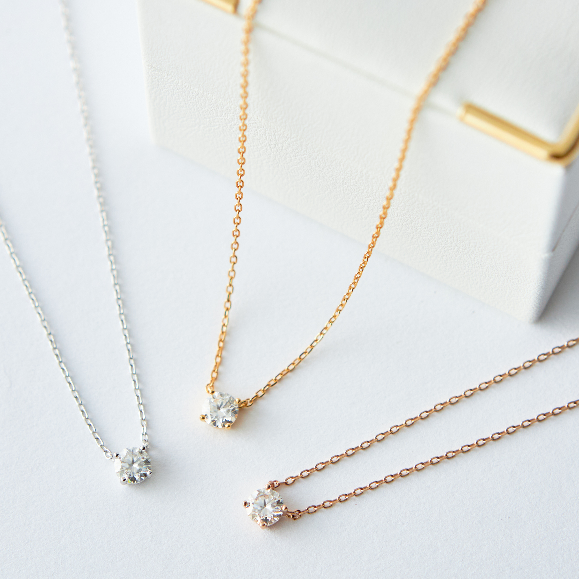 モアサナイトが輝く一粒ネックレスは上品なデザインと高級感でシーンや年齢を選びません。シルバー925に純ロジウム・K18をコーティングしており、金属アレルギーの方にも安心して着用していただけます。