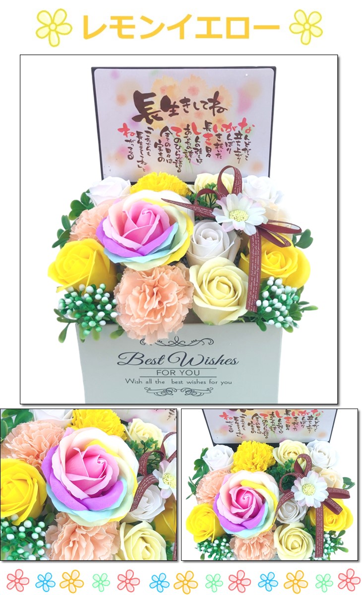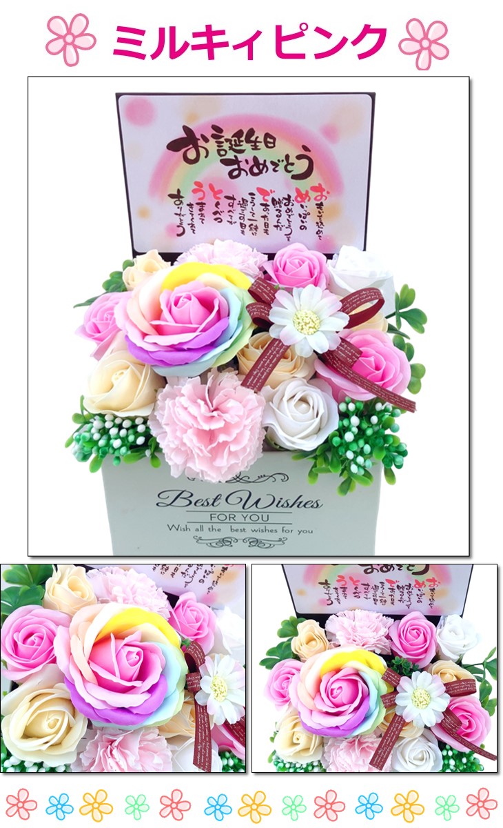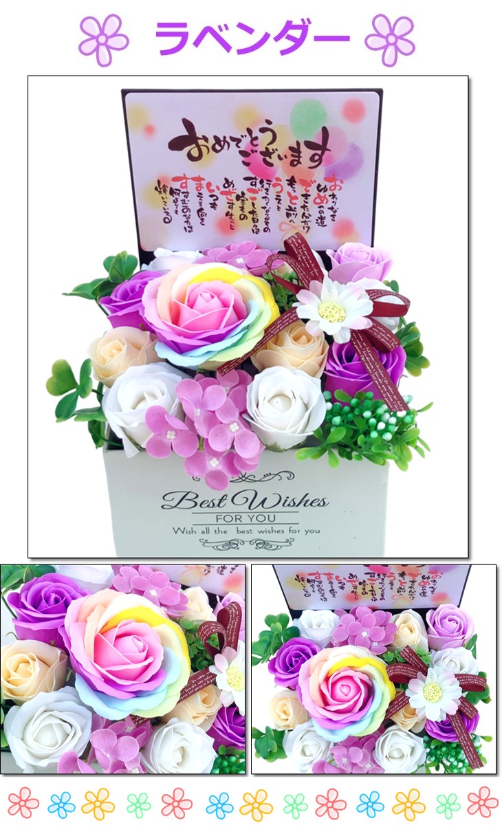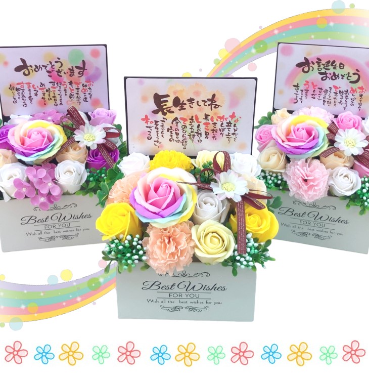 ポエムカードに温かな想いを添えた、心に残るギフトです。お花は枯れることのないソープフラワーを使用しており、お手入れも簡単で、長く美しさをお楽しみいただけます。