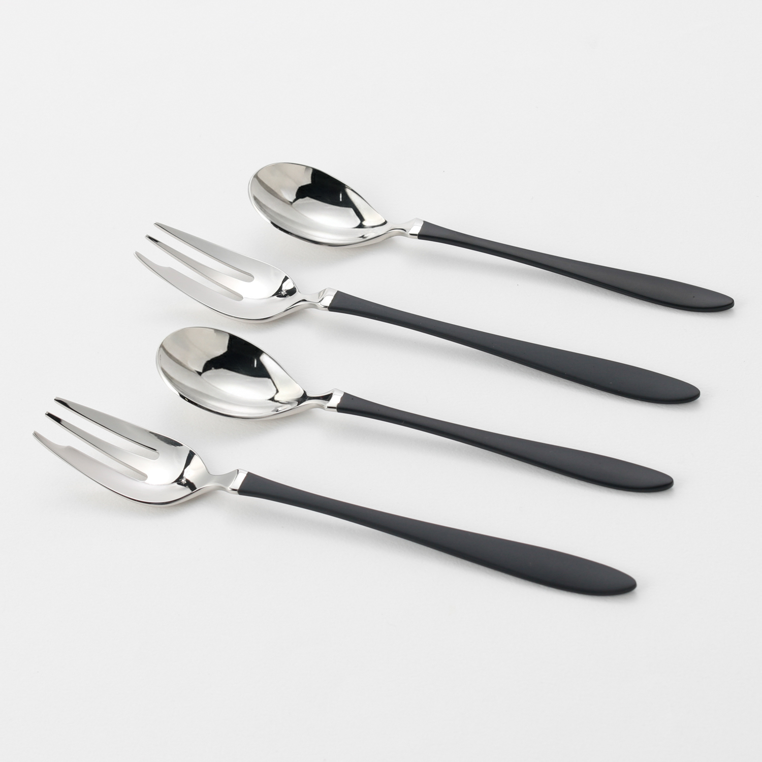 シンプルかつスタイリッシュなデザインのティースプーン&ケーキフォーク4Pセット。無駄のない美しい流線型でシャープラインはお箸との相性も非常によく、日本の食卓にぴったりです。お料理の味だけに集中できる上質なひとときをお届けします。