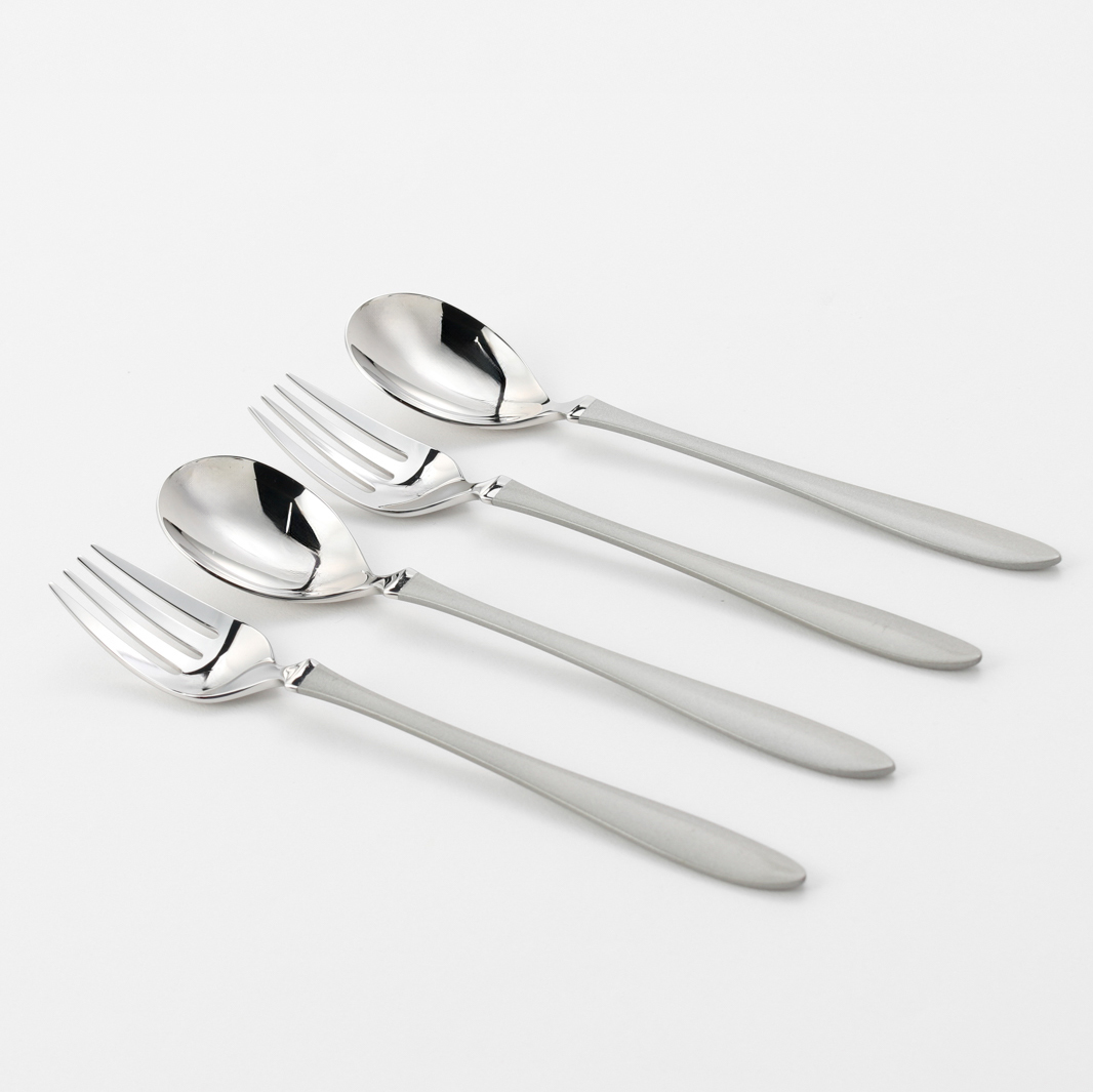 シンプルかつスタイリッシュなデザインのディナースプーン&フォーク4Pセット。無駄のない美しい流線型でシャープラインはお箸との相性も非常によく、日本の食卓にぴったりです。お料理の味だけに集中できる上質なひとときをお届けします。