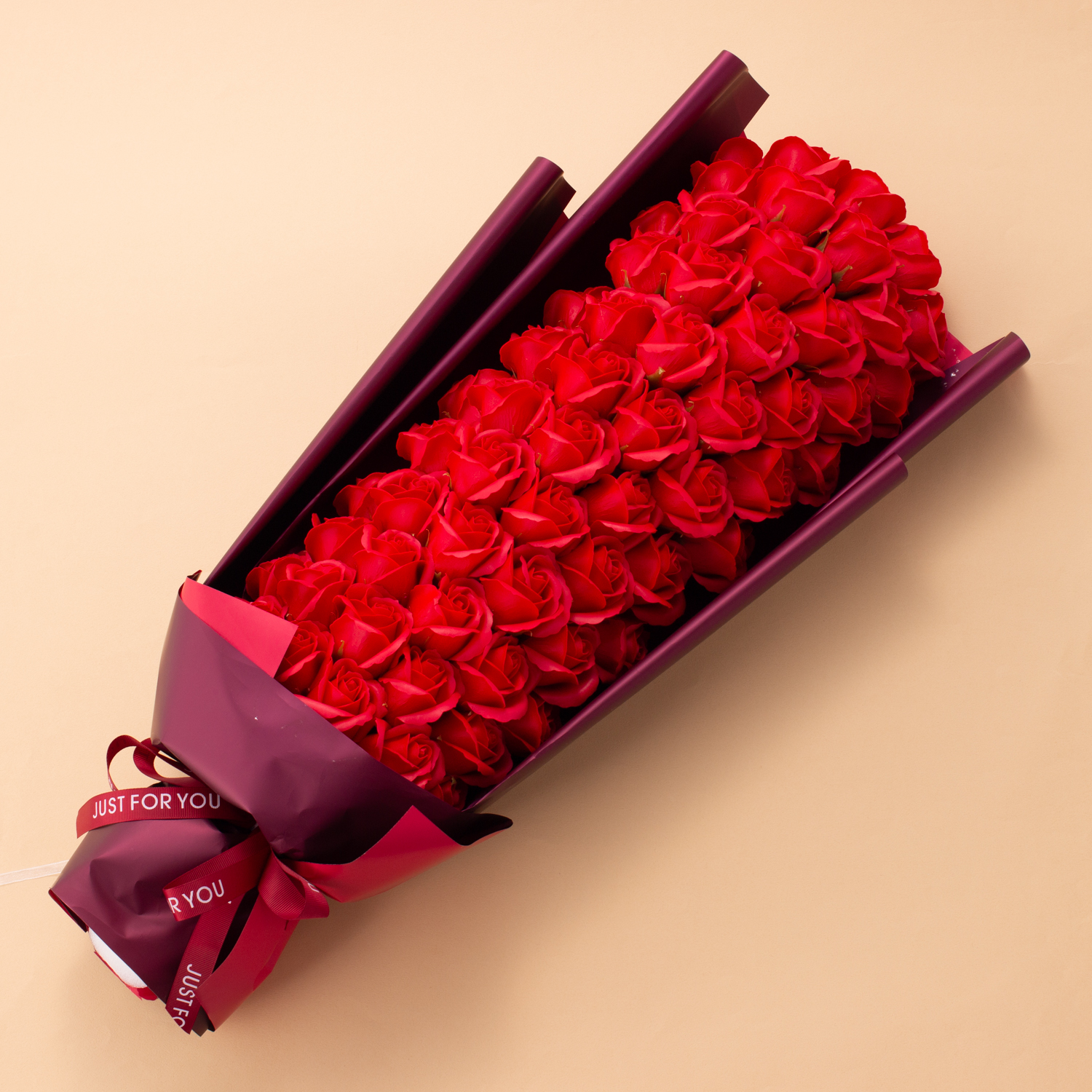 還暦のお祝いに最適な60輪の豪華なソープフラワーブーケは。ソープフラワーのため、生花と違い水やり不要で、枯れることなく長く美しさを保ちます。感謝の気持ちを込めた特別な贈り物で、大切な記念日を華やかに彩ります。