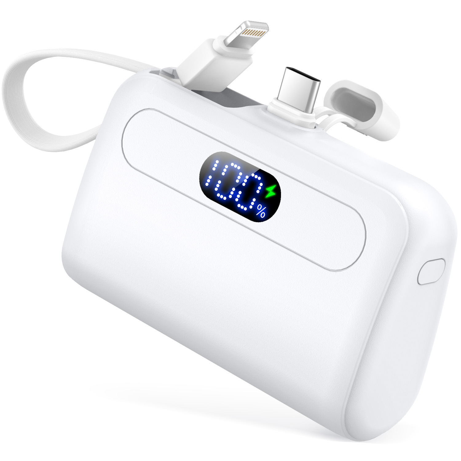 本製品はコネクターを内蔵しており、直接スマートフォン(iPhone/iPad)に差し込むだけで即充電が可能。ケーブルを持ち歩く必要がありません。 手のひらサイズで握りやすいコンパクト設計なので、充電しながらでも片手でスマートフォンを安定して持てます。音楽や動画鑑賞時にも大活躍します。