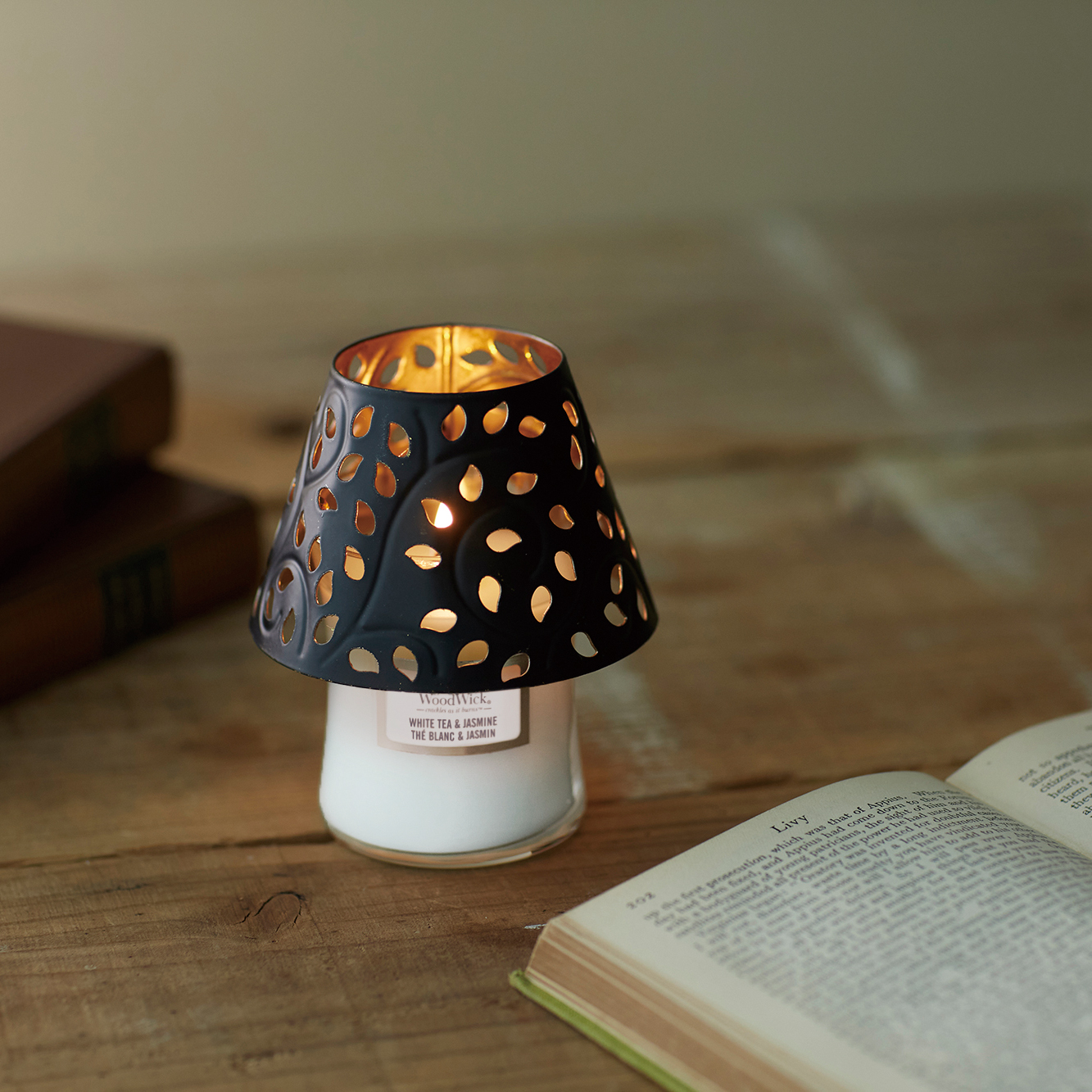 キャンドルにシェードをかぶせることで、ランプのようになり、暗くするとオシャレな陰影が表現されます。 キャンドルにシェードをかぶせるというオシャレなアイテムです。