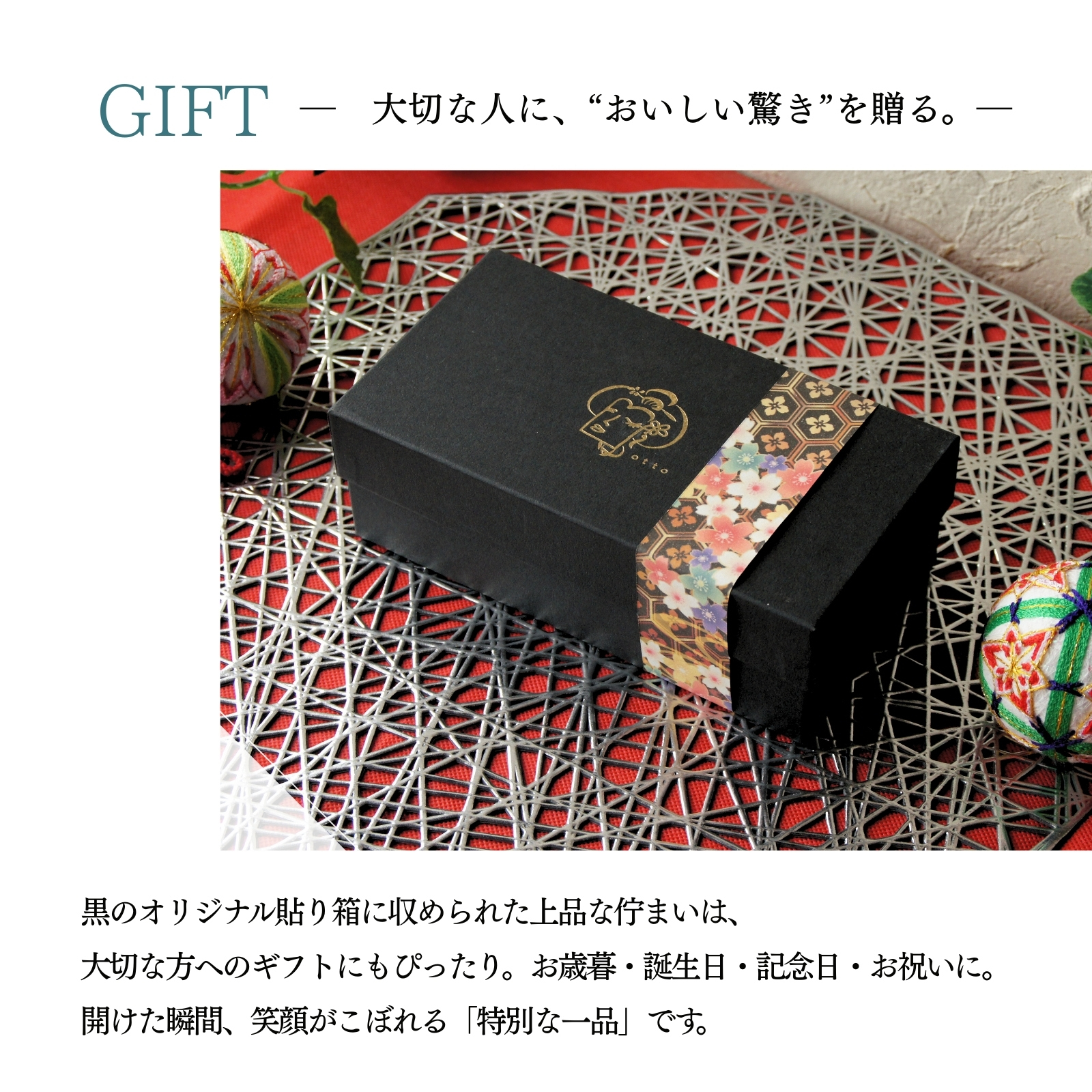 高級感のある黒のオリジナル貼り箱に入れてお届けします。 冬ギフト・お歳暮・クリスマス・お祝い・手土産など、さまざまな贈り物シーンで喜ばれています。 30代〜50代の方を中心に、男女問わず人気の高いスイーツです。