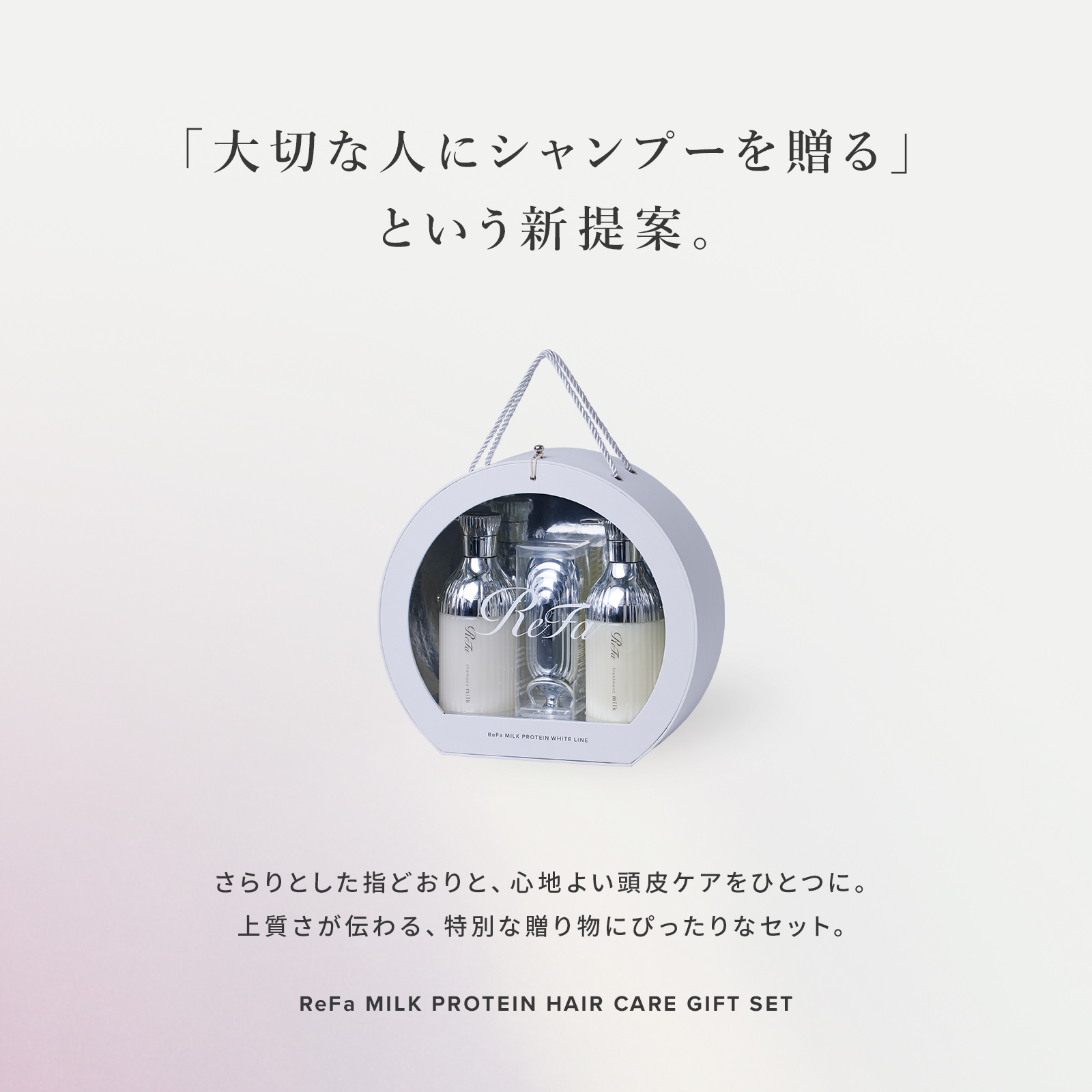 大切な人に贈る、「髪が美しくなるバスタイム」。リファミルクプロテイン ヘアケアシリーズを詰め込んだ特別なギフトBOX。