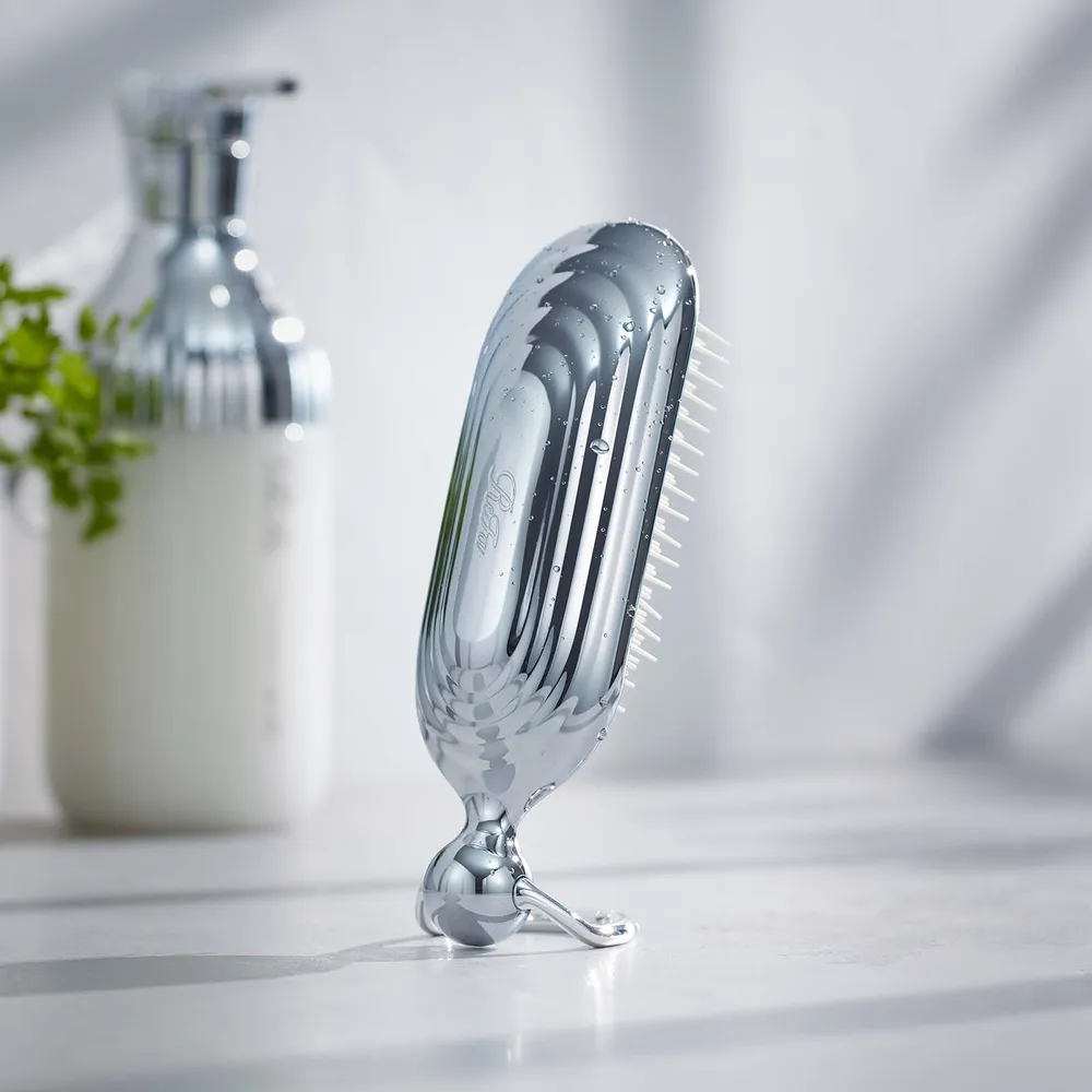 | お手入れ方法 | 【取説記載】 ・ ブラシに付いたほこり、髪の毛などの汚れはこまめに取り除いてください。 ① 汚れを洗い流します。 水またはぬるま湯(35℃程度)で洗ってください。 ※それでも落ちない場合は、水で薄めた中性洗剤を含ませ固く絞った布で拭き取ったあと、洗ってください。 ② 本体を振り、しっかりと内部の水を抜き取ります。 ③ 乾いた柔らかい布で水滴を拭き取ります。 ④ 次のいずれかの方法でしっかり自然乾燥させます。 ・ 本体下部のリングをスタンドにして、本品を自立させる。 ・ 本体下部のリングで浴室や洗面所のフックなどにつるす。 (注意事項) ・ お湯や水に浸したままにしないでください。 ・ シンナー・ベンジン・アルコール・除光液などでは、拭かないでください。部品の変形や割れなど故障のおそれがあります。 ・ シャンプー時に使用した場合は毎回、乾いた髪に使用した場合もこまめに下記のお手入れを行ってください。 |