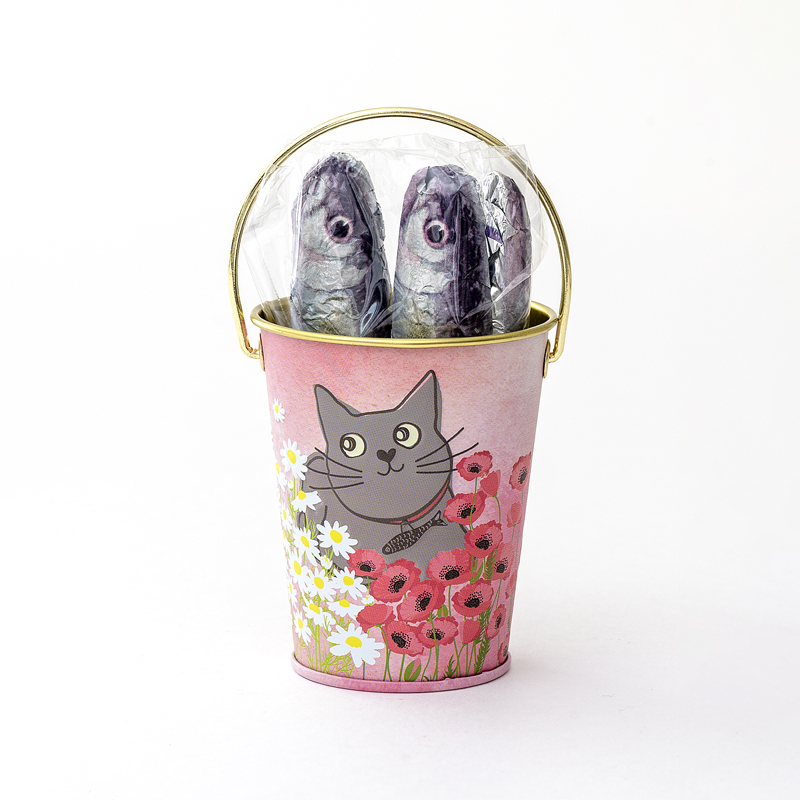 「ほほ笑みねこ」とも言われるフランスのねこ「シャルトリュー」をバケツ缶にあしらった定番サーディンショコラ。本物そっくりのサーディンに思わず笑顔に。ユーモアあふれるデザインと確かな味わいは、バレンタインギフトにぴったりです。