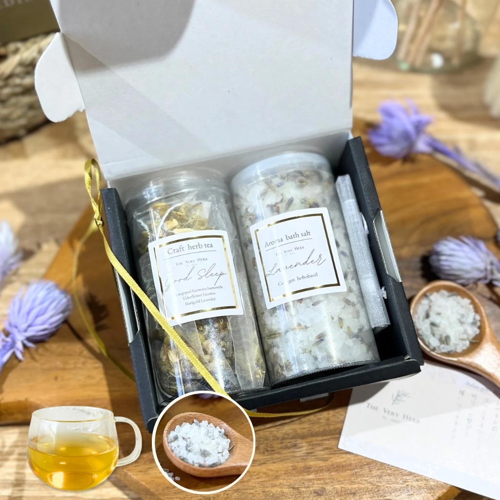 大口注文・法人のお問い合わせはこちらハーブティーと人気のアロマバスソルトを豪華ギフトセットにしました。 お誕生日やお礼に、心からほっと一息つけるような、心も体も癒されるギフトです。
