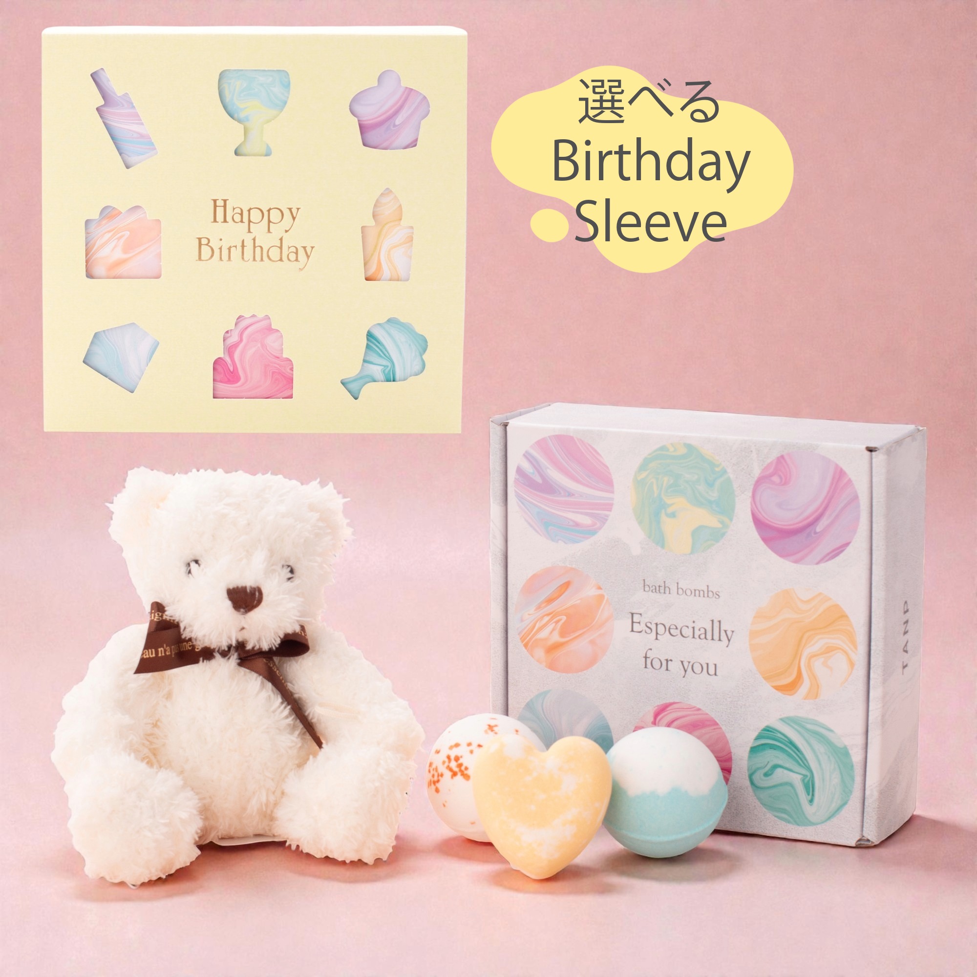 まるで宝石箱!TANPオリジナル9種のカラフルな手作りバスボムと、愛らしいテディベアのセット。オーガニック原料&うるおい成分配合で、心も体も癒やす贅沢なバスタイムをお届けします。今なら限定の誕生日スリーブでのラッピングも可能。大切な人へ、見て楽しみ使って癒される特別なギフトです。