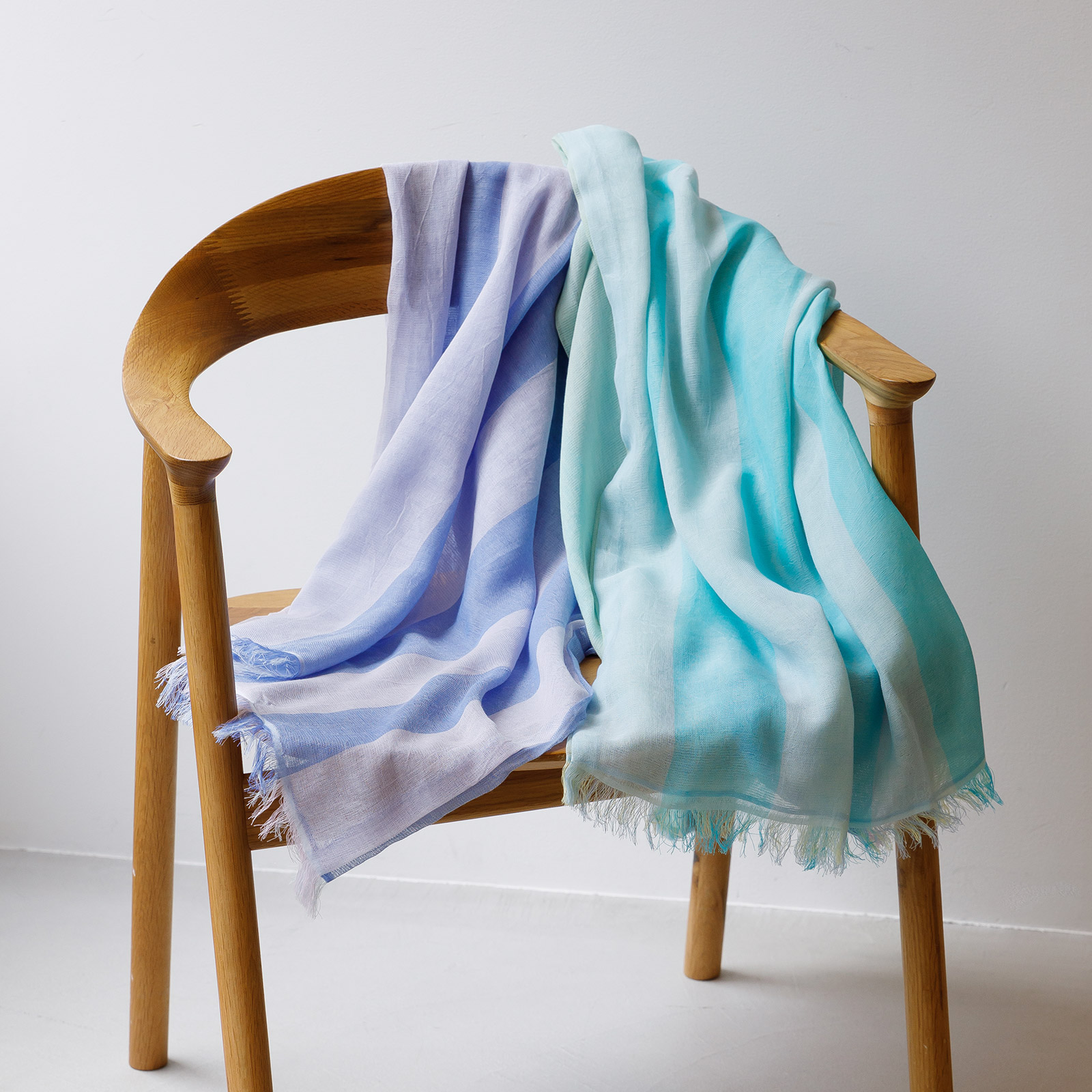 清涼感漂う発色が良い上品なカラー展開で、大人世代にも使いやすいストールです。