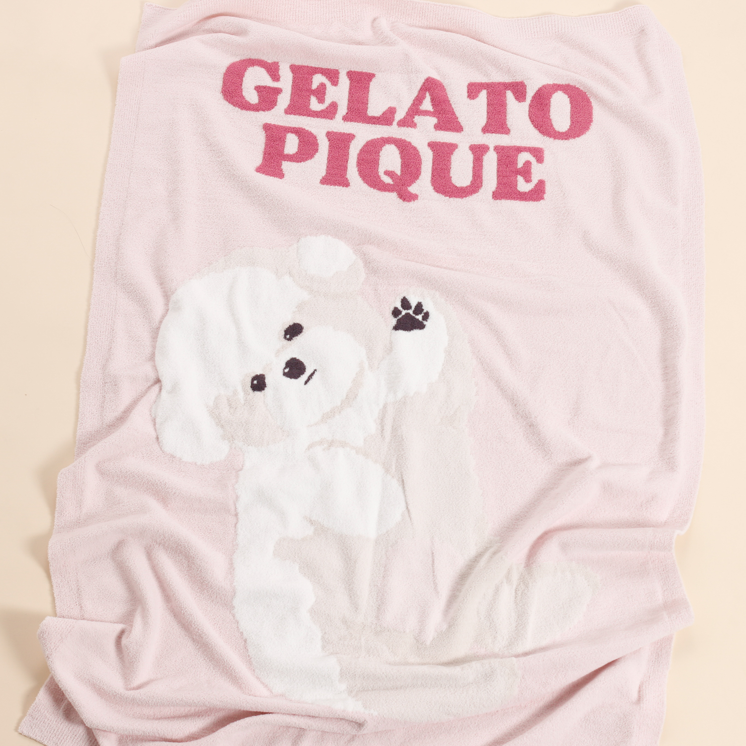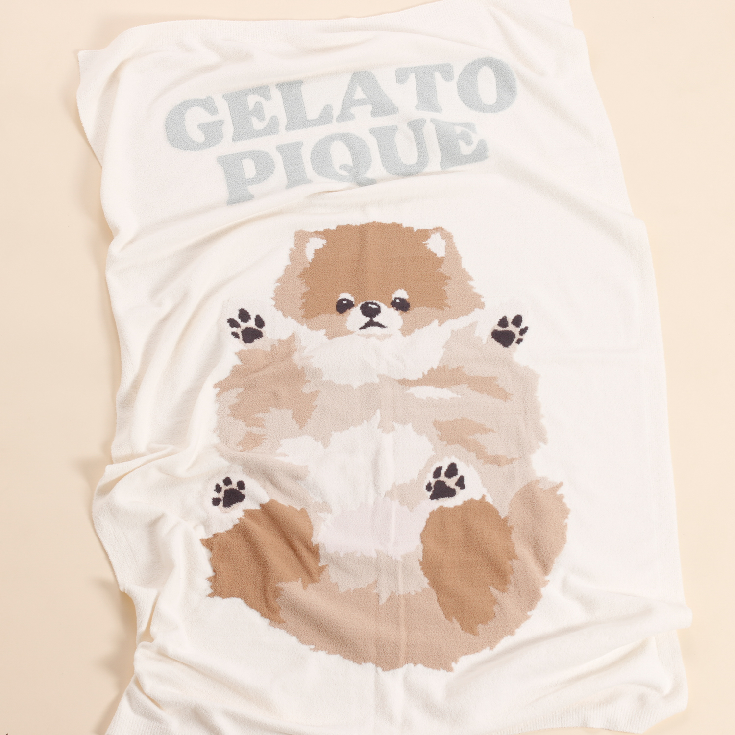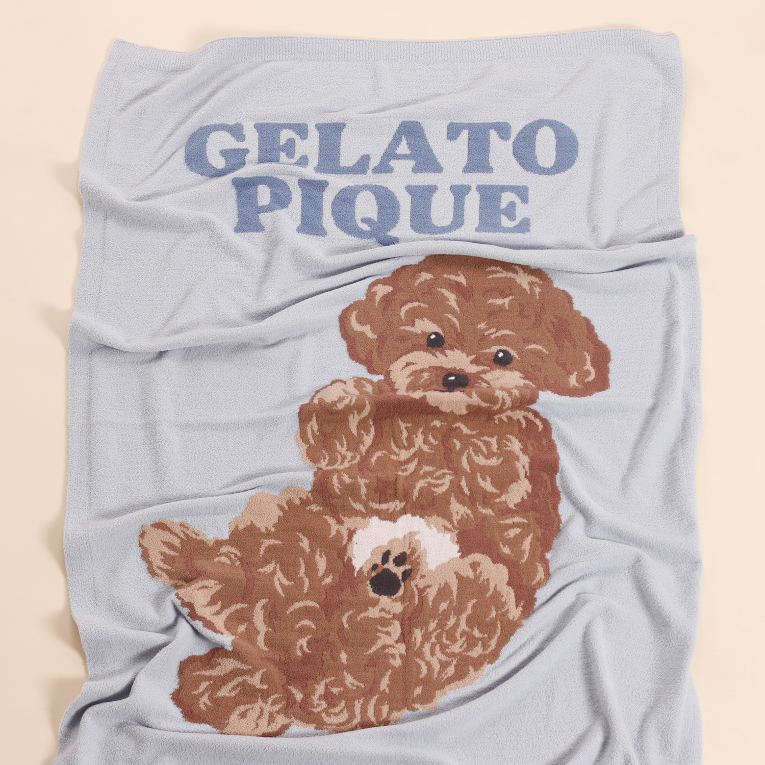 大口注文・法人のお問い合わせはこちらごろんと寝そべりお腹を見せるワンちゃんを描いたニットシリーズです。なめらかでとろけるような肌触りのニットを使用した、手頃なサイズ感のブランケット。甘えん坊な表情や、ほんのりピンクなお腹の色まで表現した絵柄を大きめにあしらいました。色は全3色で、トイプードル柄のブルー、ポメラニアン柄のクリーム、ビションフリーゼ柄のライトピンクをご用意。同シリーズのルームウェアや雑貨と組み合わせたり、ワンちゃん好きな方へのギフトにもおすすめです。