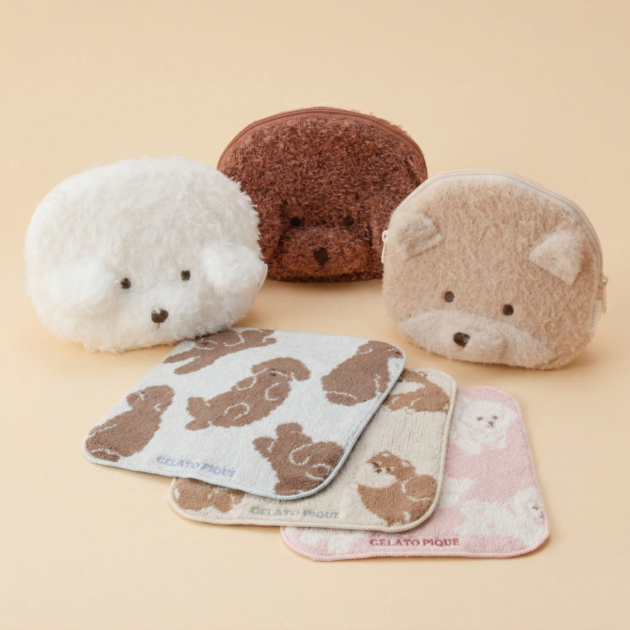 大口注文・法人のお問い合わせはこちらトイプードル、ポメラニアン、ビションフリーゼの3犬種をご用意しており、ポーチとタオルでお気に入りのワンちゃんをリンクさせれば可愛さも格別!ご自宅用としてはもちろん、犬を飼っている方や大切な友人への「癒しのギフト」としても大変喜ばれる組み合わせです。