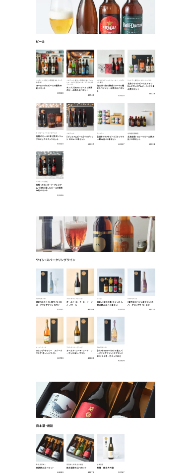 日本各地の銘酒、世界のワイン、クラフトビールといったアルコール類や、それらを最高に楽しむための酒器やおつまみまで、ギフト専門オンラインショップならではの充実したラインナップをご用意しました。 ブランド例) イネディット、サントリー、ミッケラー、小西酒造(株)、ラシャス、酔鯨、吉川醸造、南部美人、AND THE FRIET(アンド ザ フリット)、東洋佐々木ガラス..etc