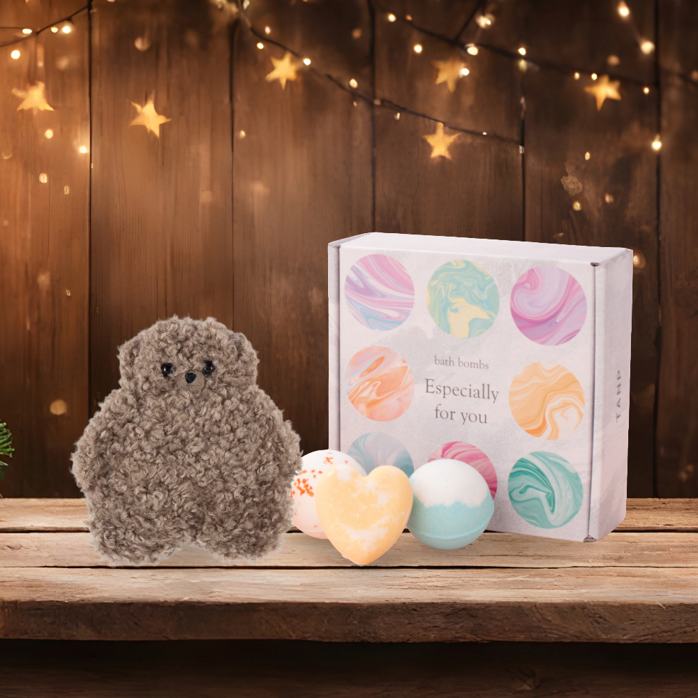 タンプオリジナルの宝石箱のようなカラフルな9種のバスボムと、愛らしいテディベアのハンドウォーマーの冬にぴったりなセット。ほっと心と身体を温めてくれるギフト。今なら限定のクリスマスラッピングも承ります。