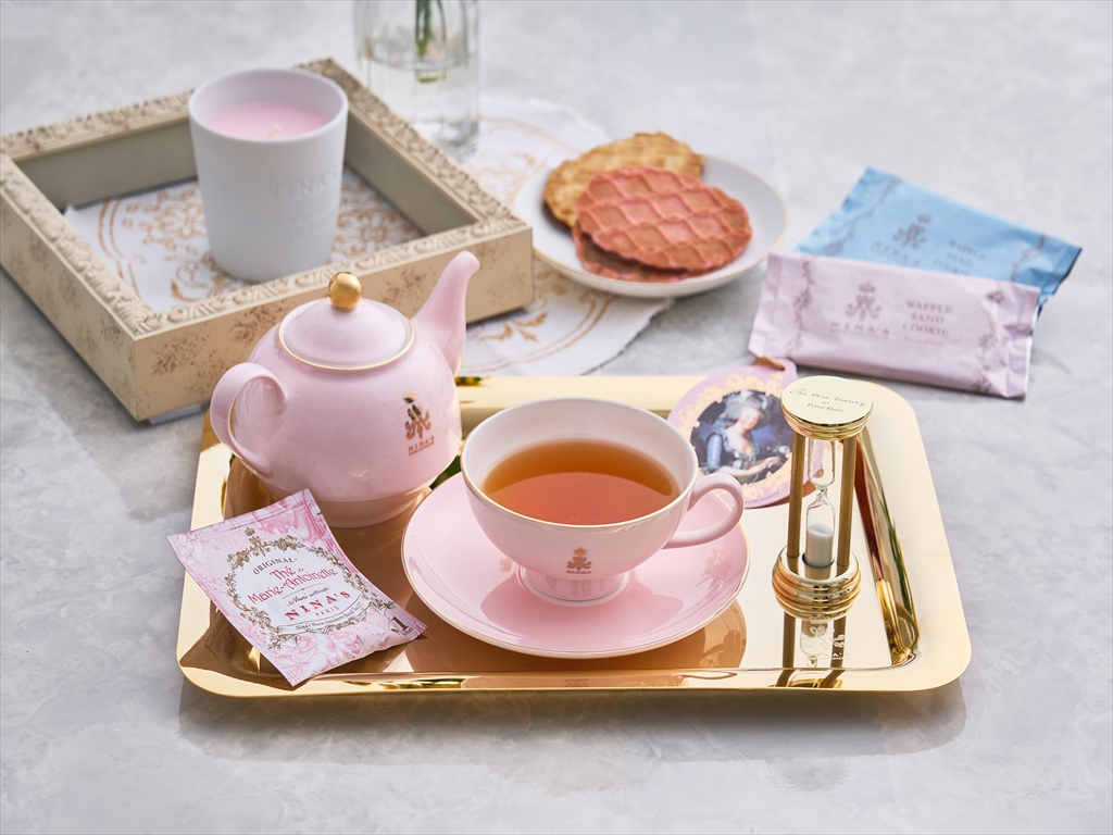 「ニナスマリー・アントワネット」は、パリの中心地であるヴァンドーム広場のすぐ隣に本店を構える老舗の紅茶ブランドです。王妃マリー・アントワネットも愛したヴェルサイユシークレットガーデンのりんごとバラで香りづけした「ニナスオリジナルマリー・アントワネットティー」をはじめ、丹念に香りづけした茶葉は、豊かで深みがあり、フランスの高級レストランや一流ホテルのラウンジなどでも愛用されています。