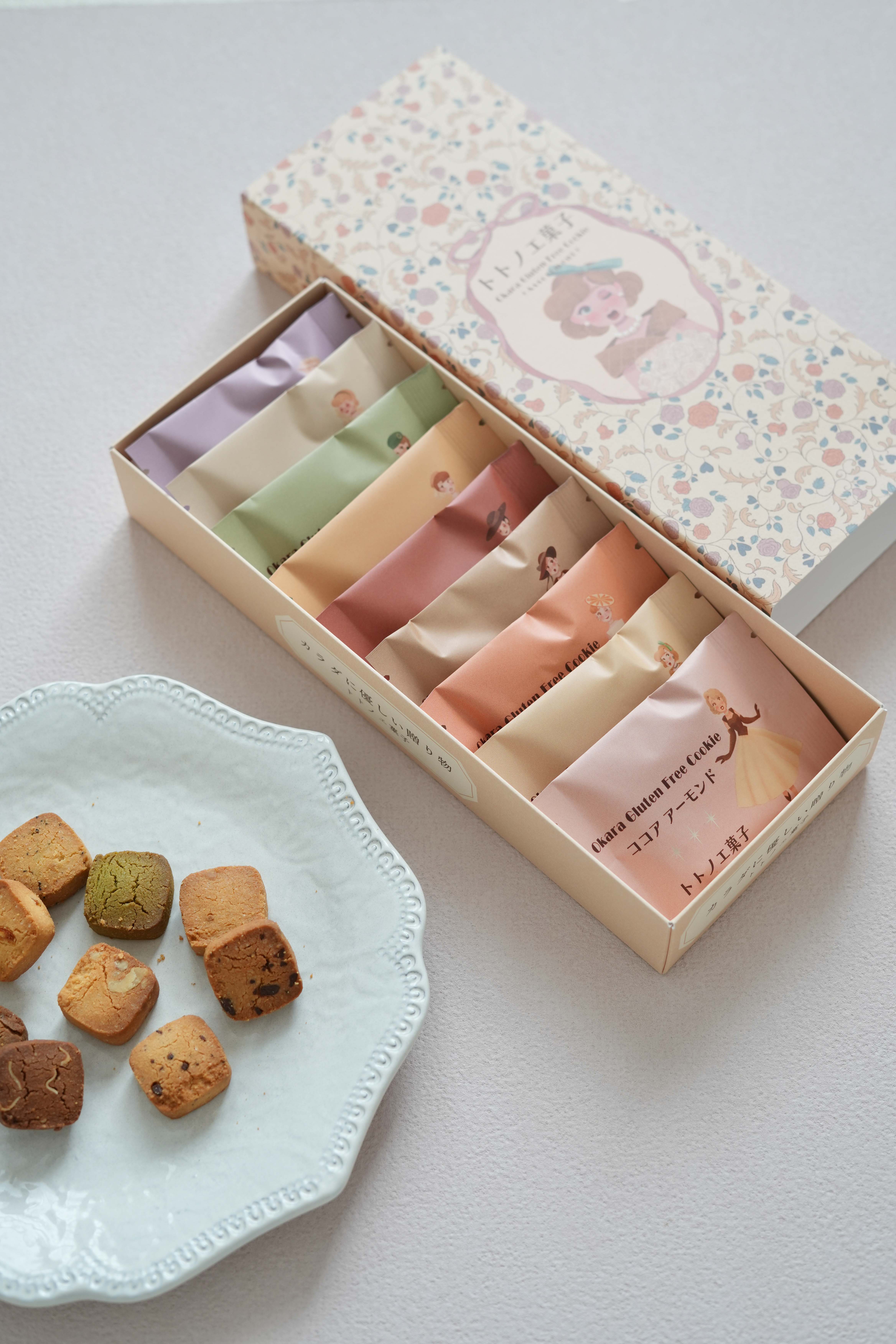 大口注文・法人のお問い合わせはこちらカラダに優しいグルテンフリークッキーがたっぷり9種類味わえる。 開けるたびにわくわくするご褒美ボックス♡ 自分へのご褒美にも、贈り物にも大活躍です。