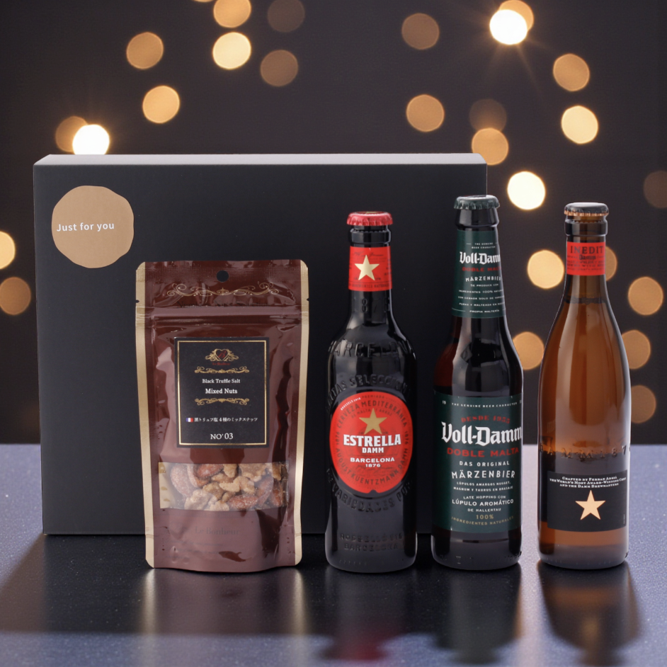 大口注文・法人のお問い合わせはこちら個性豊かな3種類のスペインビールに、選べるナッツのおつまみを添えたギフトセット。本場スペインのビールを贅沢に飲み比べながら、ナッツとのペアリングをお楽しみいただけます。お酒好きなお相手へ、至福の家飲み時間を贈るギフトです。