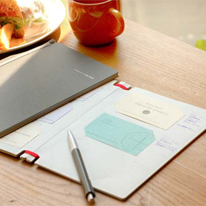 名刺とともに一言右に添えることができる名刺ファイル「Log book felt」。名刺を交換したときの日付、相手の特徴、相手との会話などを脇に添えることができます。表面はフェルト地になっており、ビジネスシーンだけではなく自宅の雰囲気にもマッチします。