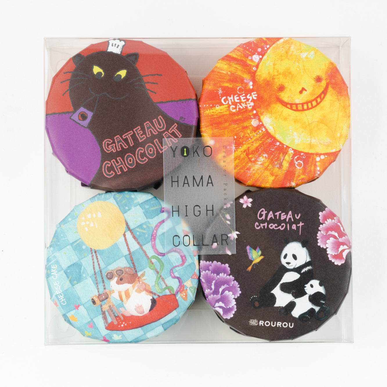 4名の人気クリエイターによるイラストが描かれた、かわいいパッケージに包まれている缶詰のチーズケーキとガトーショコラ。4種のデザインをセットにしました。 いつたべてもおいしさそのまま、パティシエ監修の本格派スイーツです。 賞味期限は保存料を使わず製造より常温で2年。ふっくらとなめらかな食感を楽しめます。
