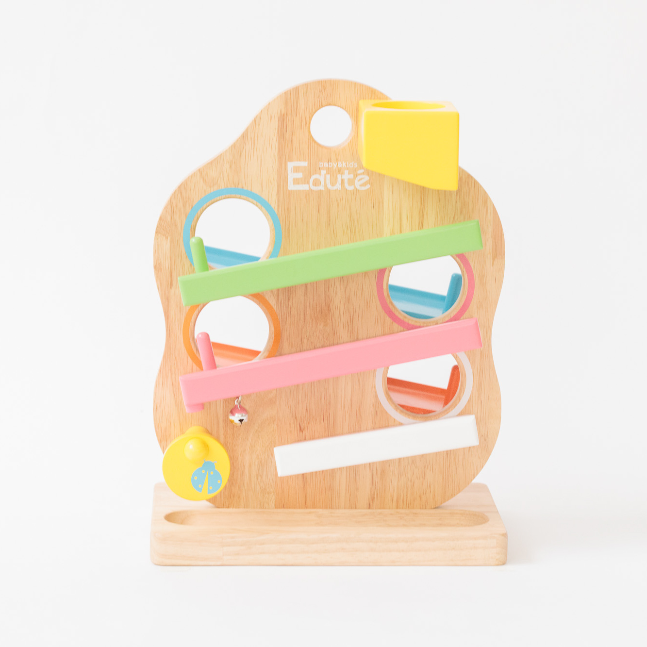 チョウチョ・テントウムシ・ハチのイラストがプリントされた木がモチーフのスロープトイ。 黄色の煙突にボールを入れると、カラフルなスロープをボールが転がっていきます。 スロープの最後には鈴がチリン♪ 可愛い仕掛けがお子様の興味を惹きます。