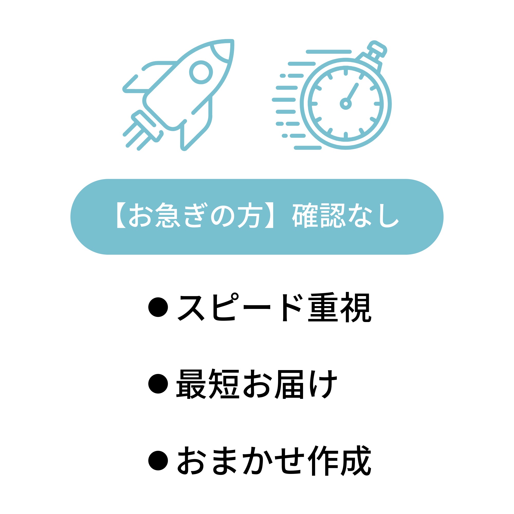 お届けまでのスピードを最優先するプランです。 ⚫︎こんな方に: お祝いの日が迫っている方、プロにおまかせしたい方。 ⚫︎流れ: ご注文受付後、すぐに制作・梱包・発送へと進みます。 ⚫︎発送時期: 2営業日以内〜翌営業日に発送いたします。