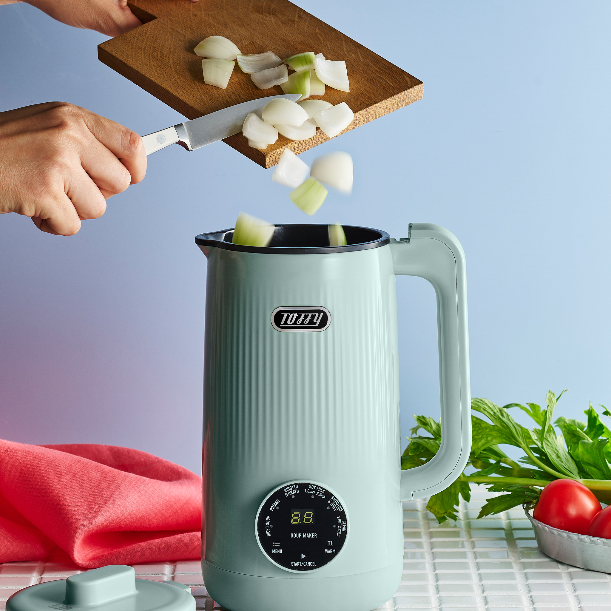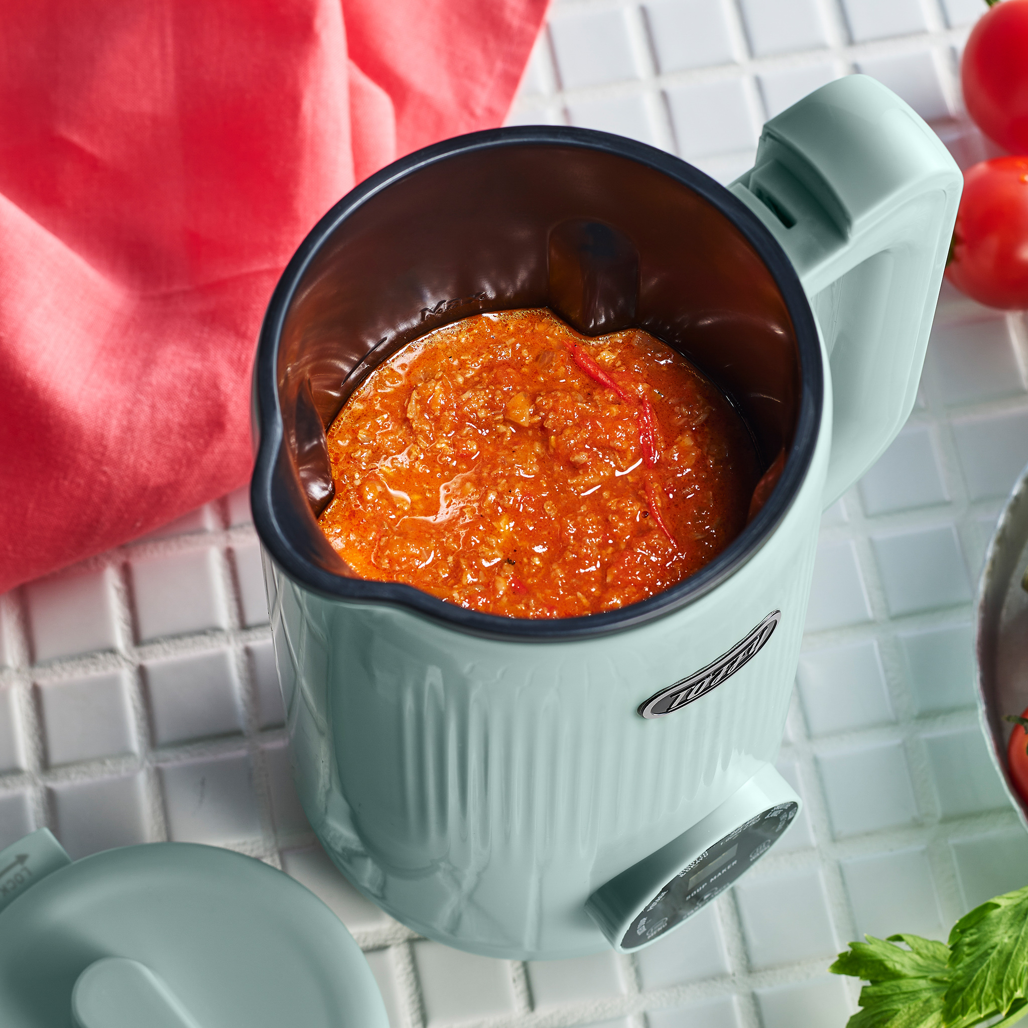 食べるスープやポタージュ、おかゆなどがスイッチひとつで自動で作れるオートスープブレンダーです。