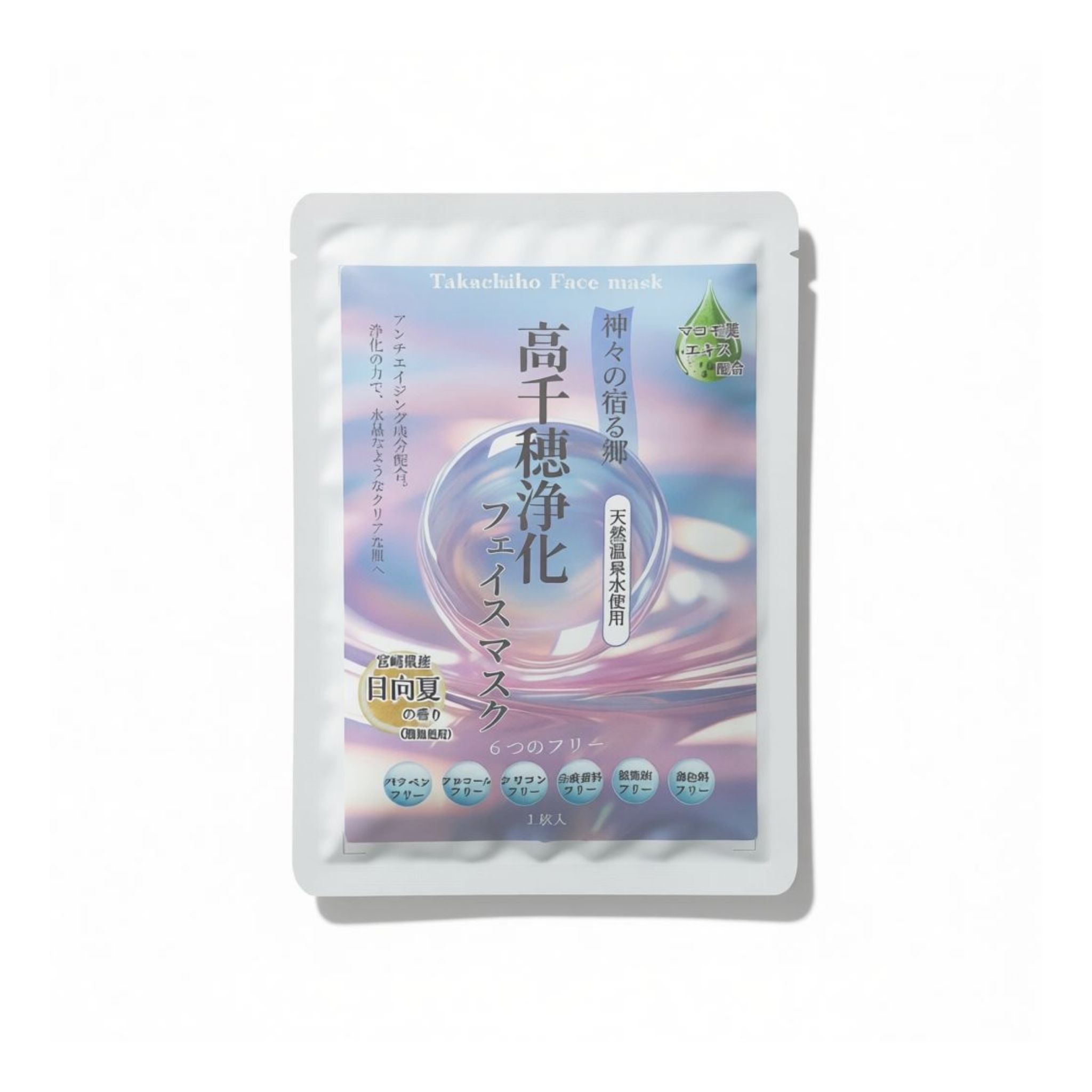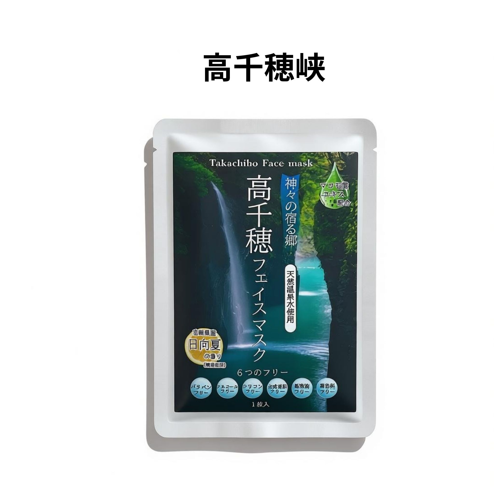 神話の郷・高千穂の清らかな自然と美しい風景を感じる、高千穂峡デザインのフェイスマスクです。 ※中身(成分・香り・使用感)はすべて共通です。