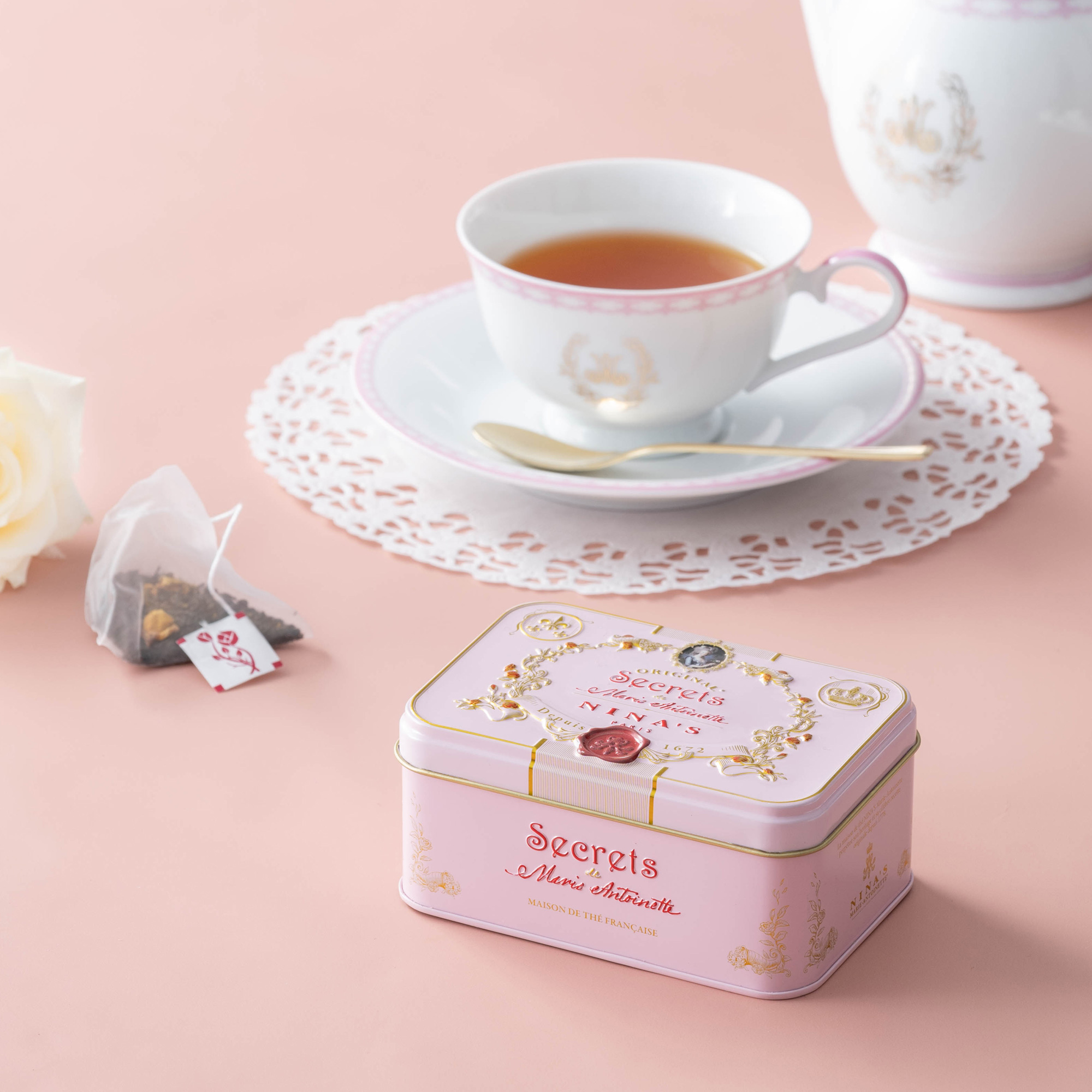 「ニナスマリー・アントワネット」は、パリの中心地であるヴァンドーム広場のすぐ隣に 本店を構える老舗の紅茶ブランドです。王妃マリー・アントワネットも愛したヴェルサイユシークレットガーデンのりんごとバラで香りづけした「ニナスオリジナルマリー・アントワネットティー」をはじめ、丹念に香りづけした茶葉は、豊かで深みがあり、フランスの高級レストランや一流ホテルのラウンジなどでも愛用されています。