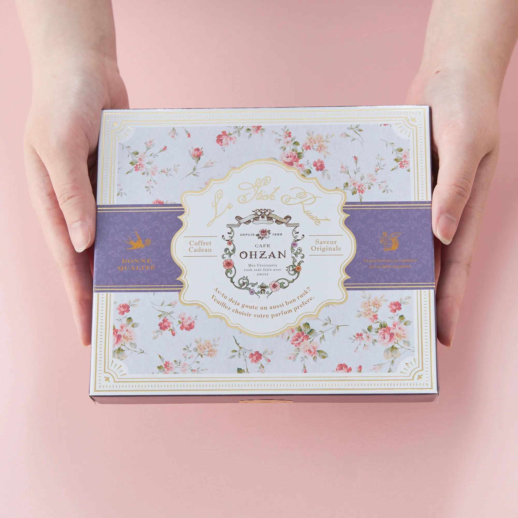 ブランドロゴと花をあしらった大人可愛いパッケージです。5色のカラフルなひきだしが付いて、開ける時にどんなフレーバーが入っているかワクワク感も味わえる、ギフトにぴったりの商品です。ラスクは一つ一つ個包装されているので、召し上がった後も小物やアクセサリー入れに使うことができます。