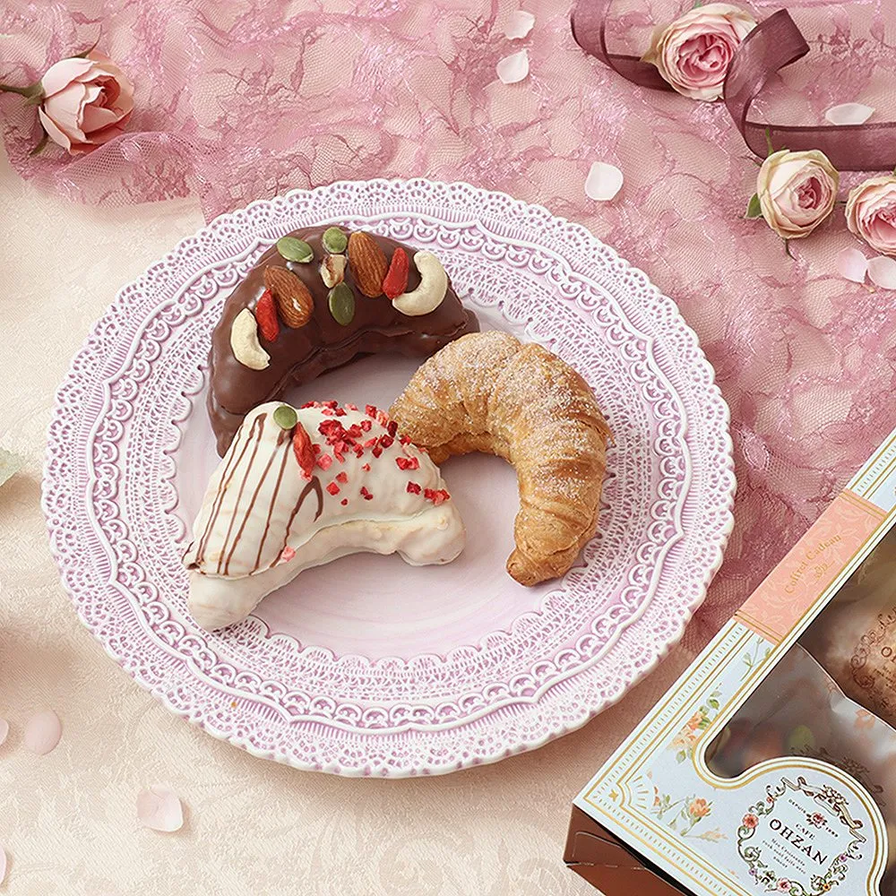 チョコレートをたっぷりとコーティングし、お花やドライフルーツ、ナッツなどでデコレーション。まるで宝石のような、サクサクの食感に仕上げたクロワッサンラスクです。 フレーバーは3種類。シュガー・ナッツミルクチョコ・ストロベリーホワイトチョコをお楽しみいただけます。